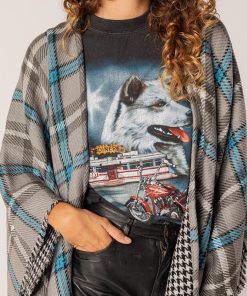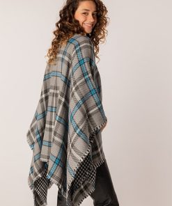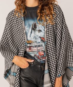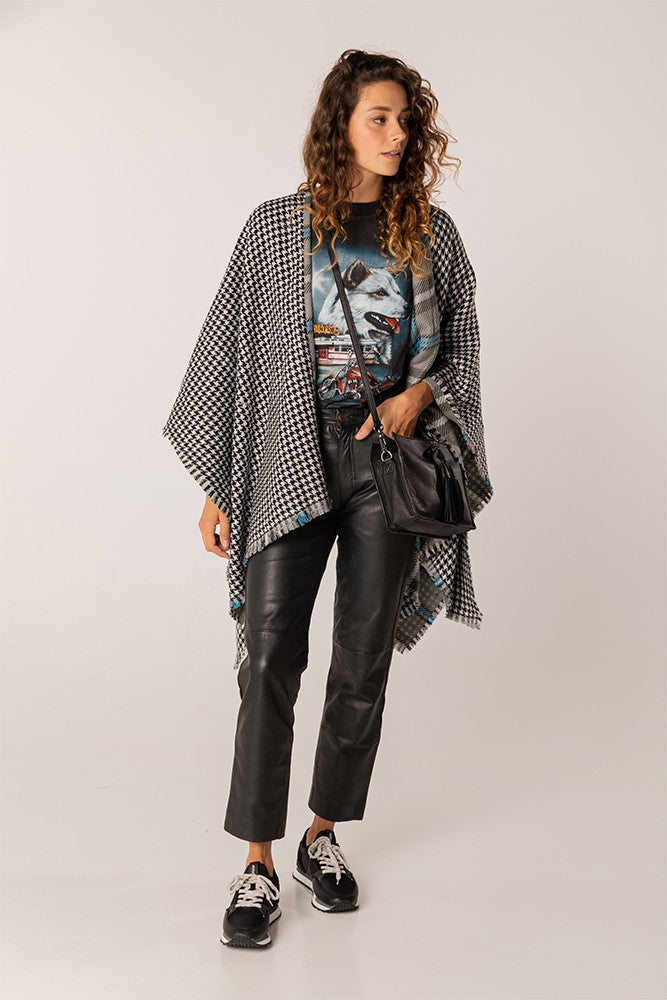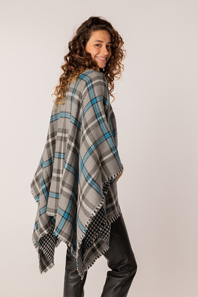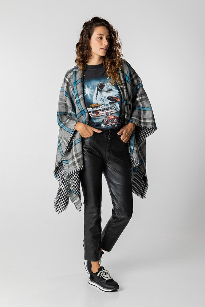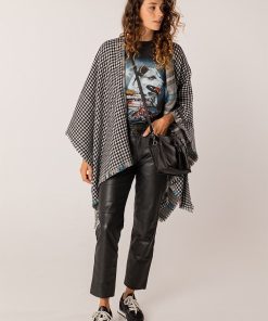 Reversible women’s poncho made of very warm, loose and soft to the touch fabrics, perfect for autumn and winter days. One of its parts, has a nice plaid print in plaid style, and the other, with houndstooth print.
