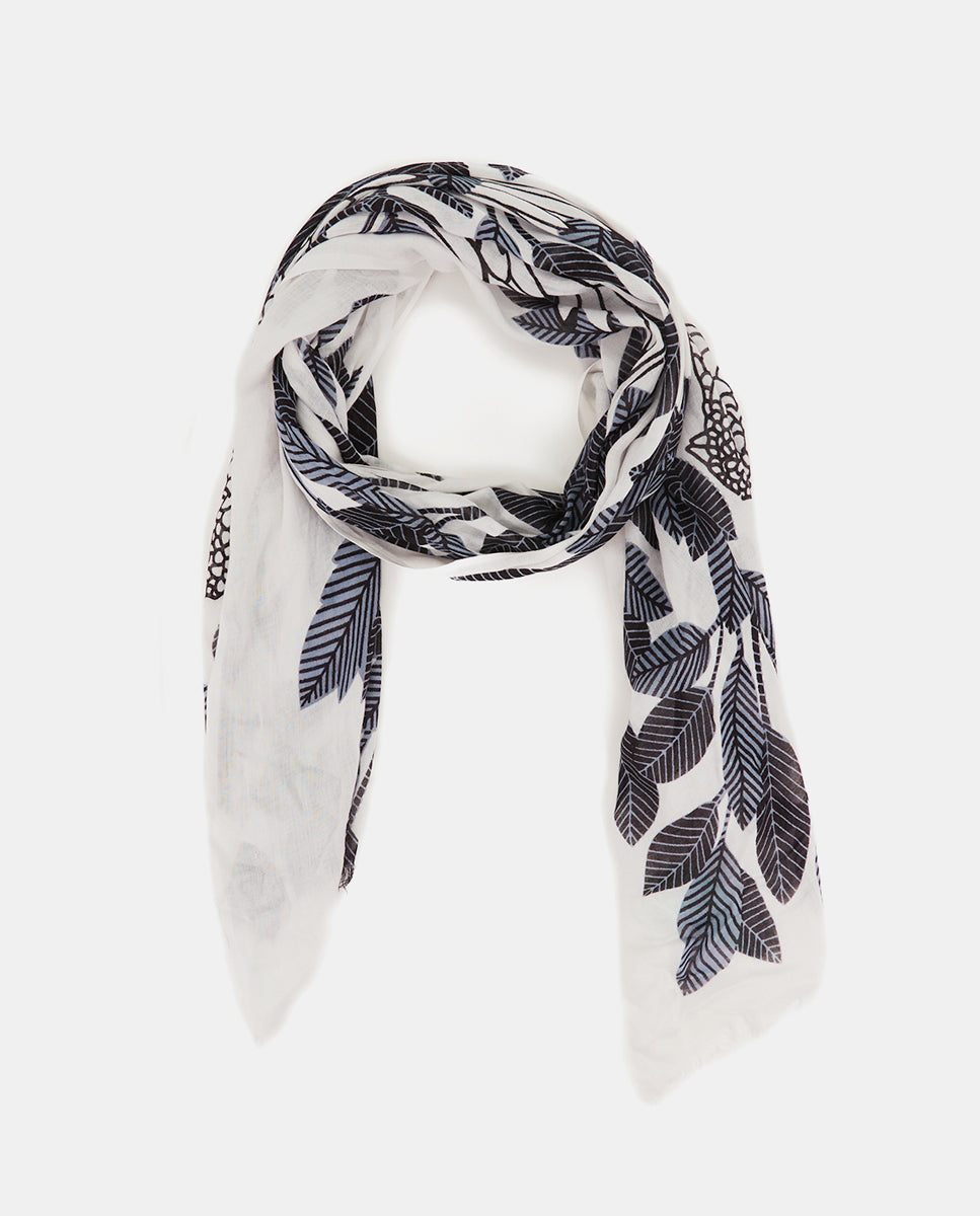 Women’s scarf with a unique natural print made of viscose. This design stands out with its striking print of natural motifs, featuring the impressive silhouette of a central bird. Its soft, fresh, and loose fabric is perfect for the spring and summer months. The frayed edges add a more casual style.