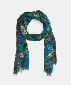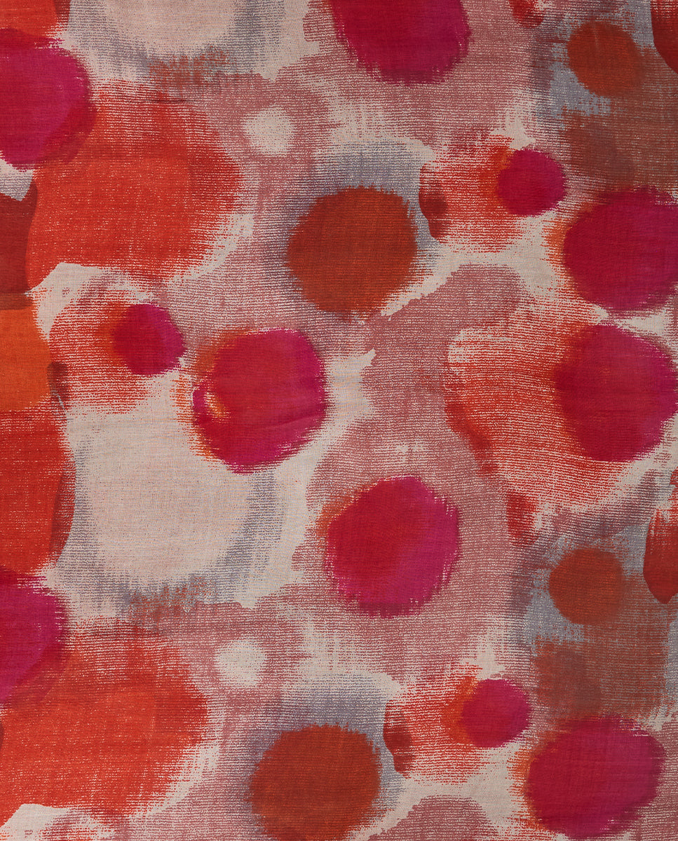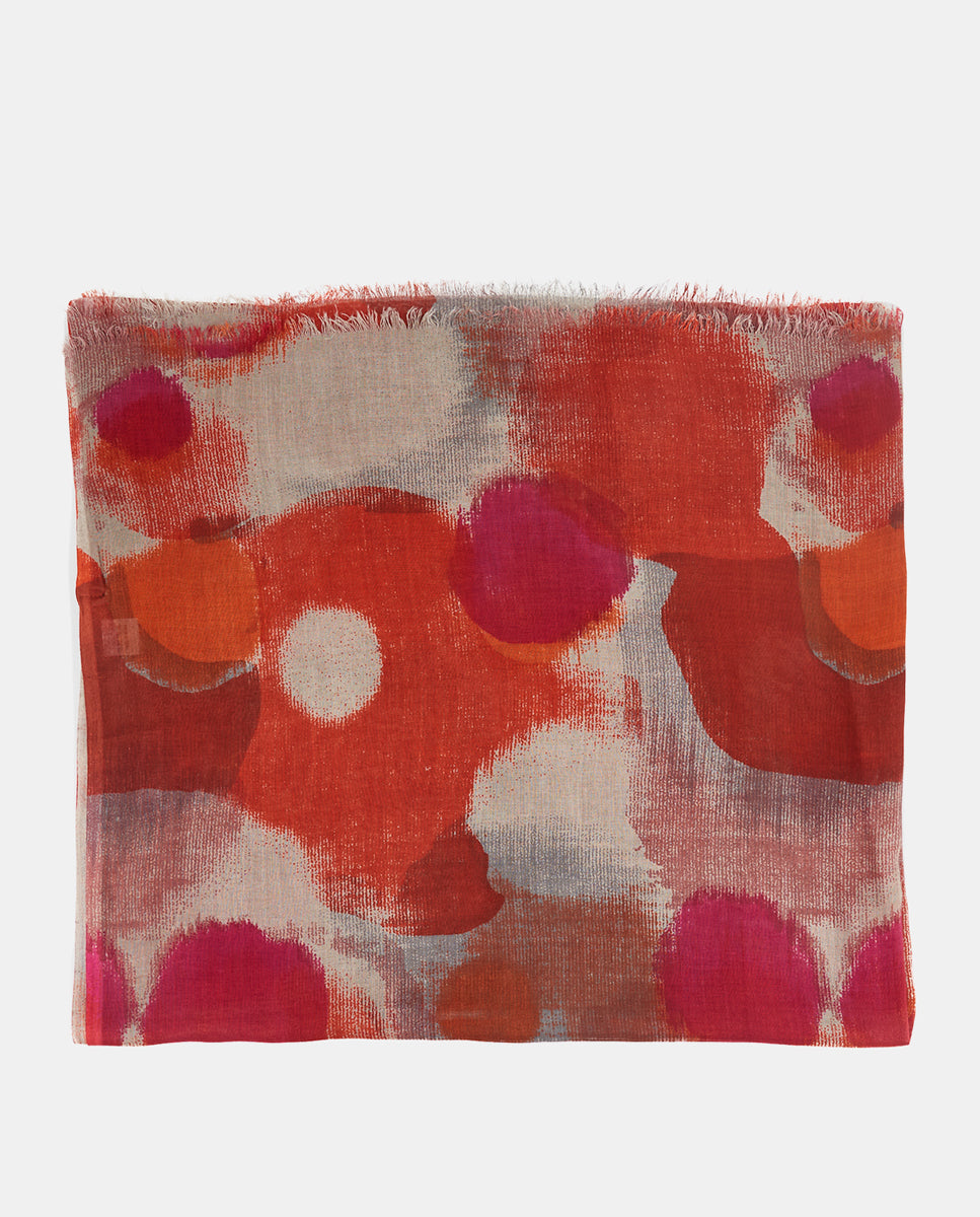 Soft, lightweight wool scarf with an abstract print. A versatile and functional accessory, ideal for any occasion. Frayed edges.