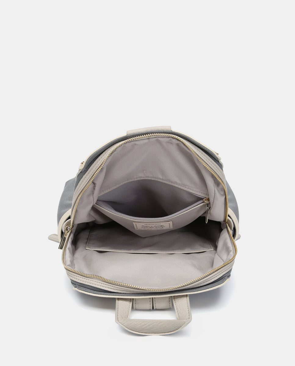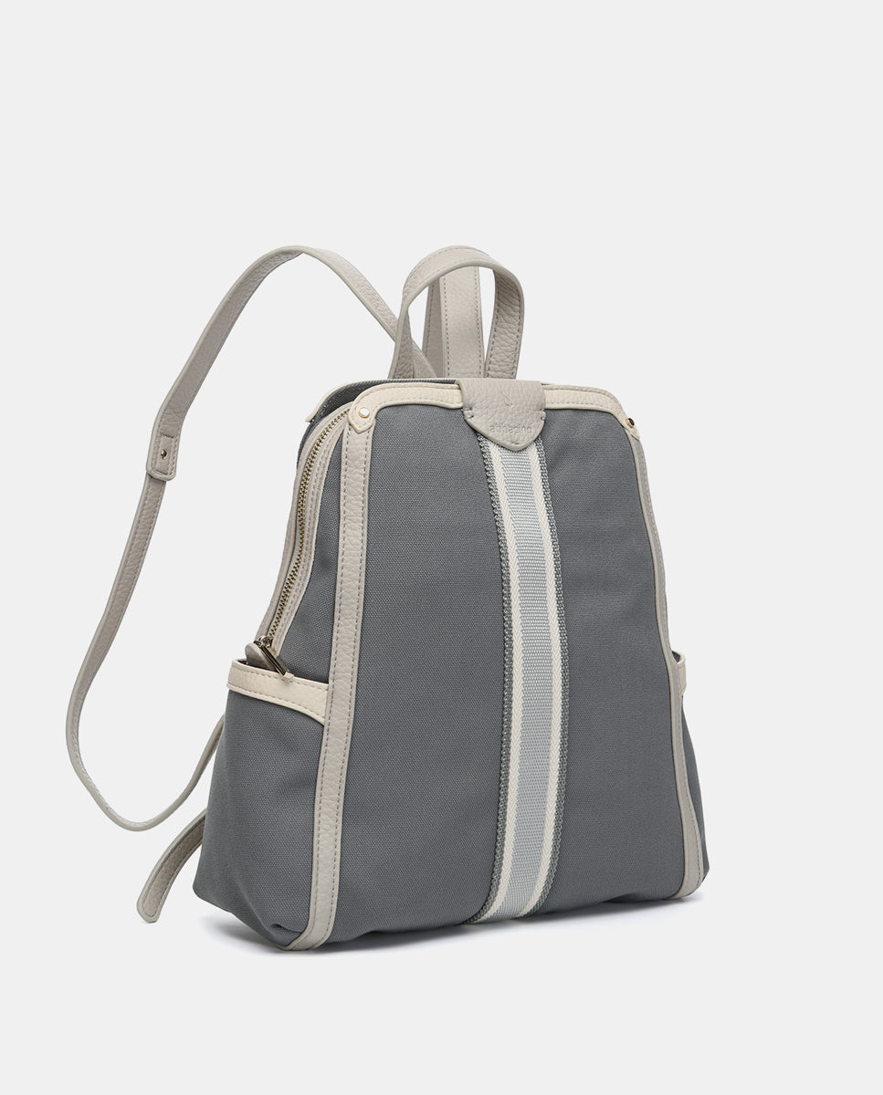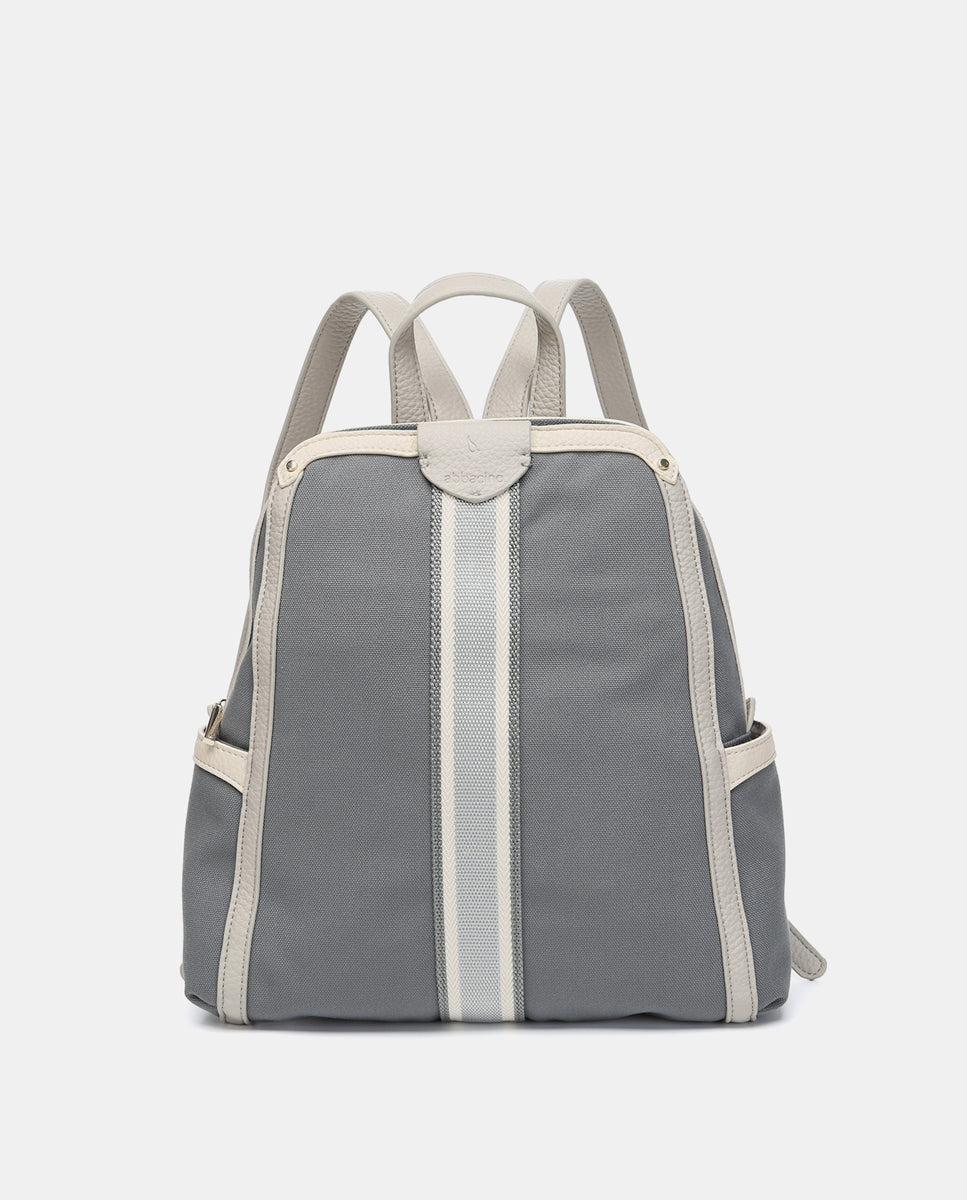 Women’s backpack made from recycled fabrics. A fluid and lightweight design with a clear Mediterranean influence and a strong navy style. Casual in nature, it will become the perfect companion for spring and summer days. Its main features are:
