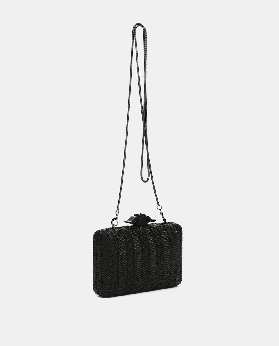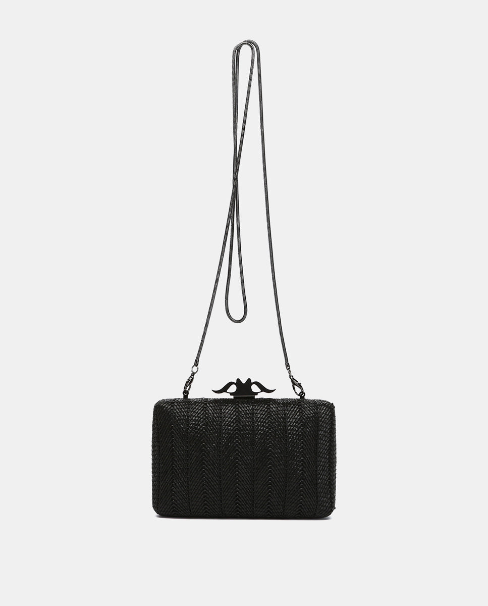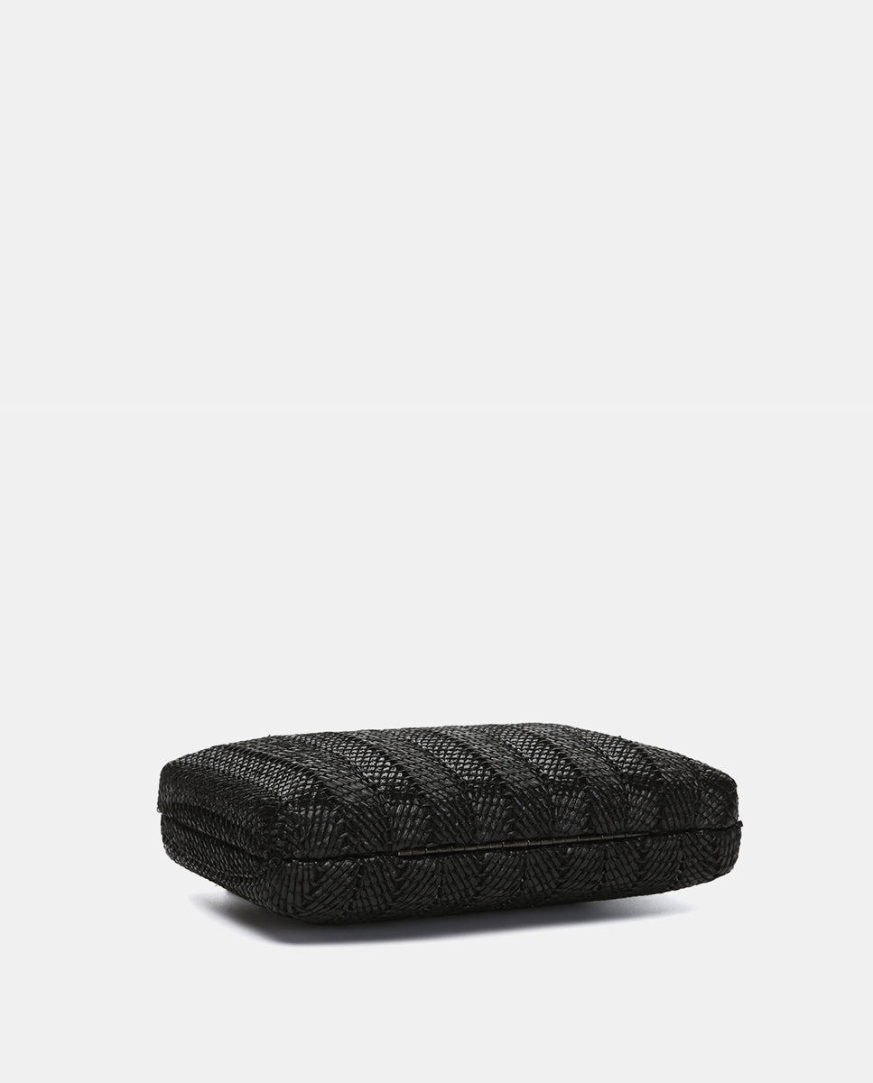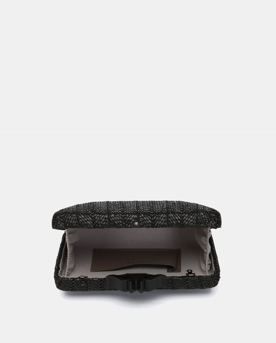 Square party clutch with herringbone weaving and a 3D closure featuring the Abbacino logo. A special hand bag for events to carry your essentials. Its main features are: