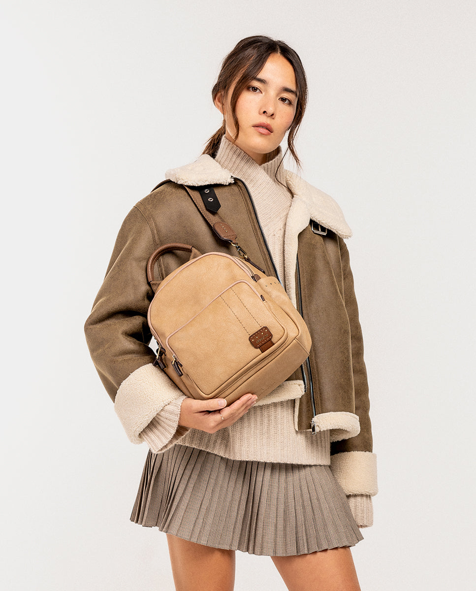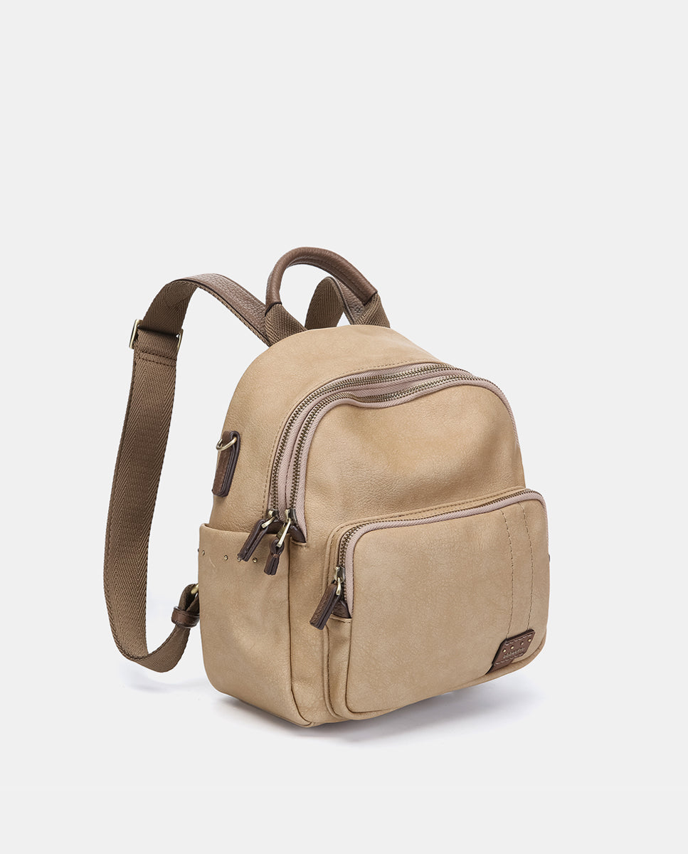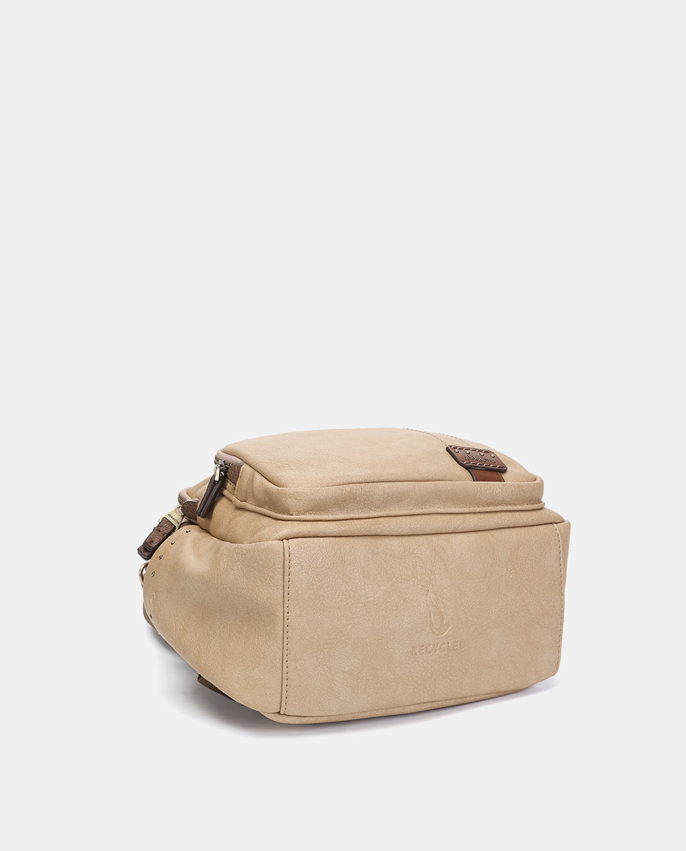 Casual women’s backpack made from recycled materials, ideal for everyday use. Functional and practical, perfect for those looking for comfort and organization. Its main features are: