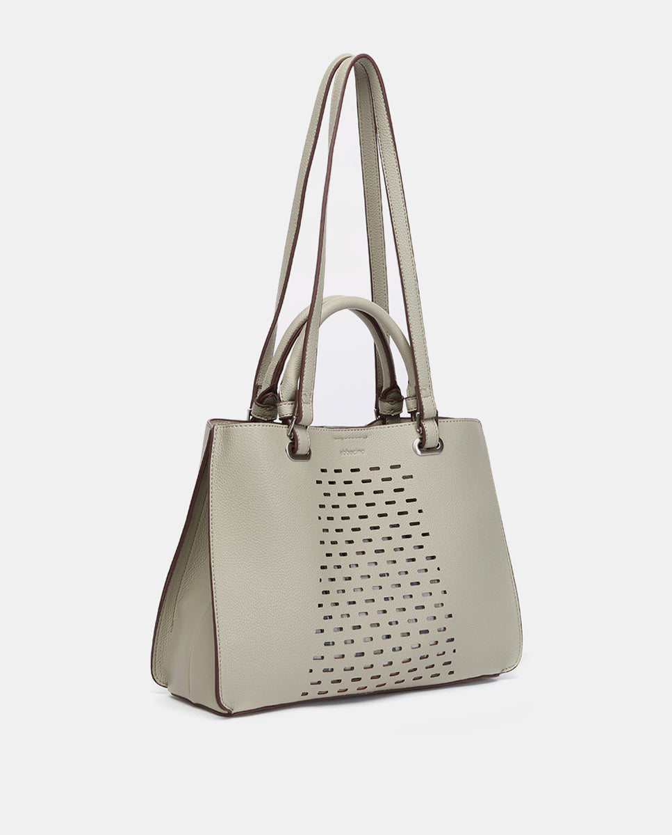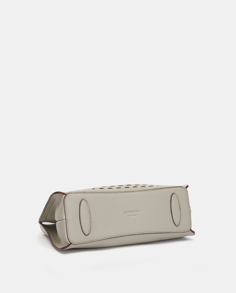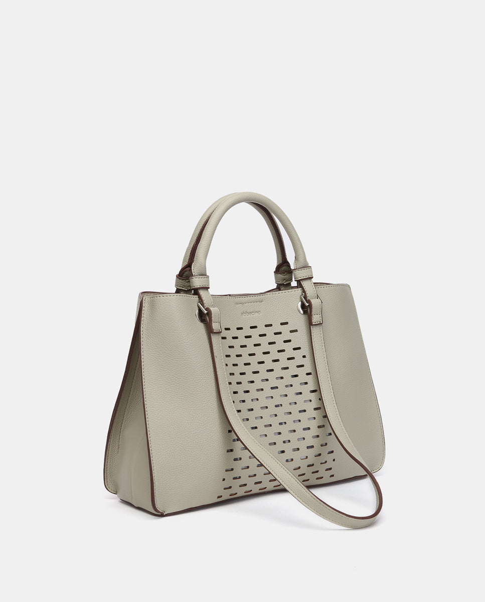 Lady-style handbag made from recycled materials, featuring a beautiful cut-out design on the front. A very feminine model with an elegant air and well-crafted finishes. Its main features are: