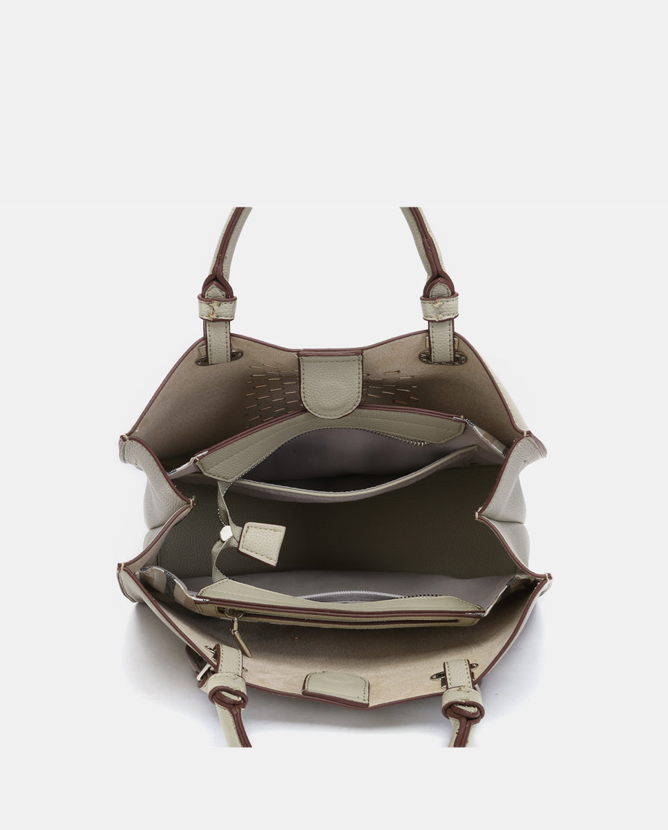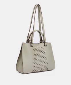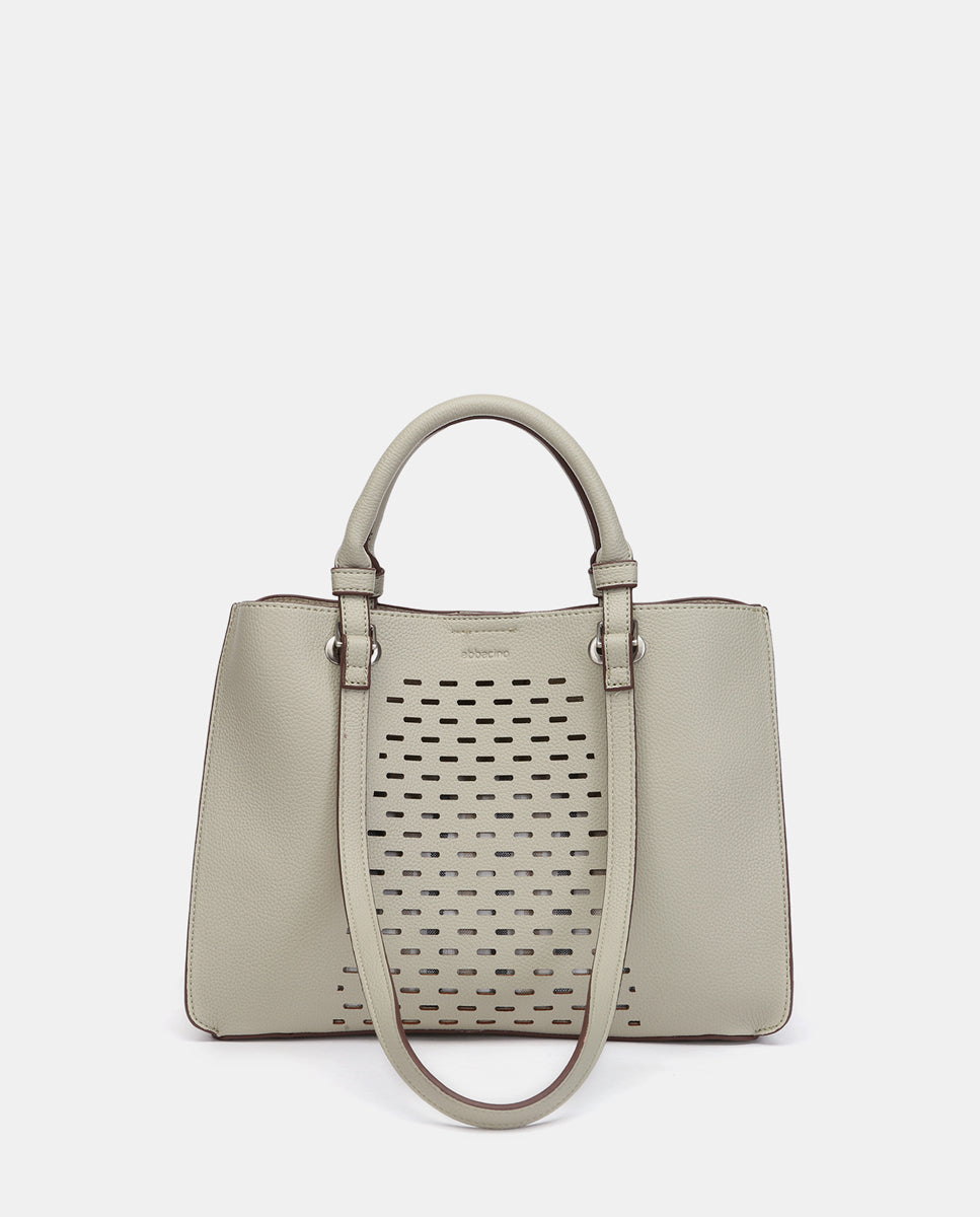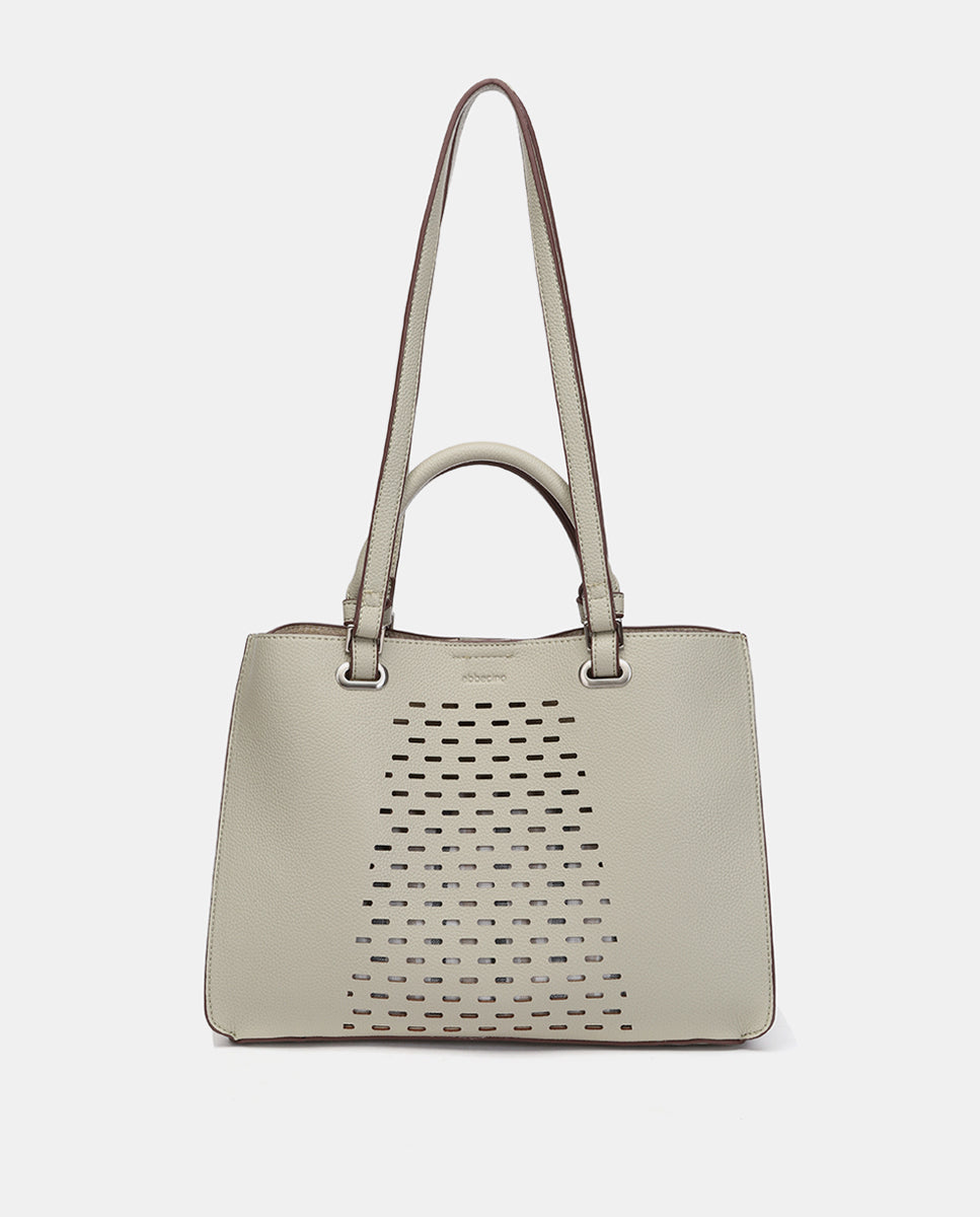 Lady-style handbag made from recycled materials, featuring a beautiful cut-out design on the front. A very feminine model with an elegant air and well-crafted finishes. Its main features are: