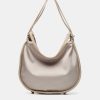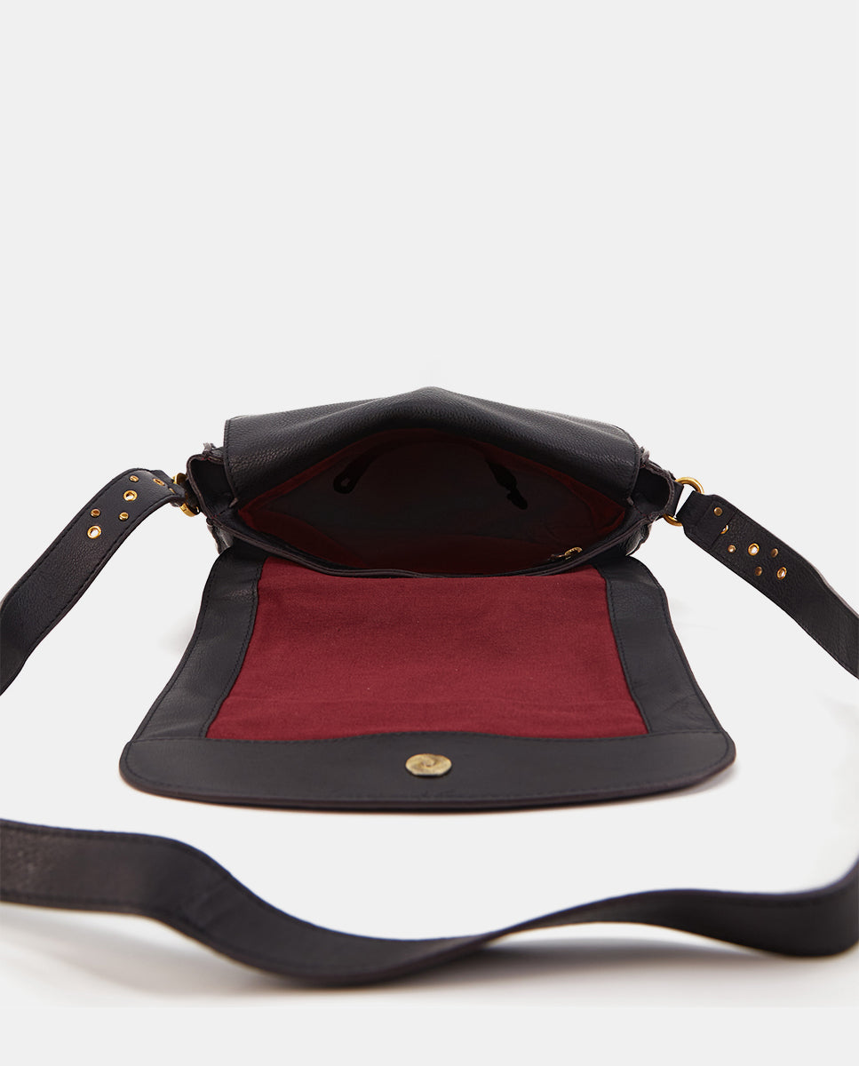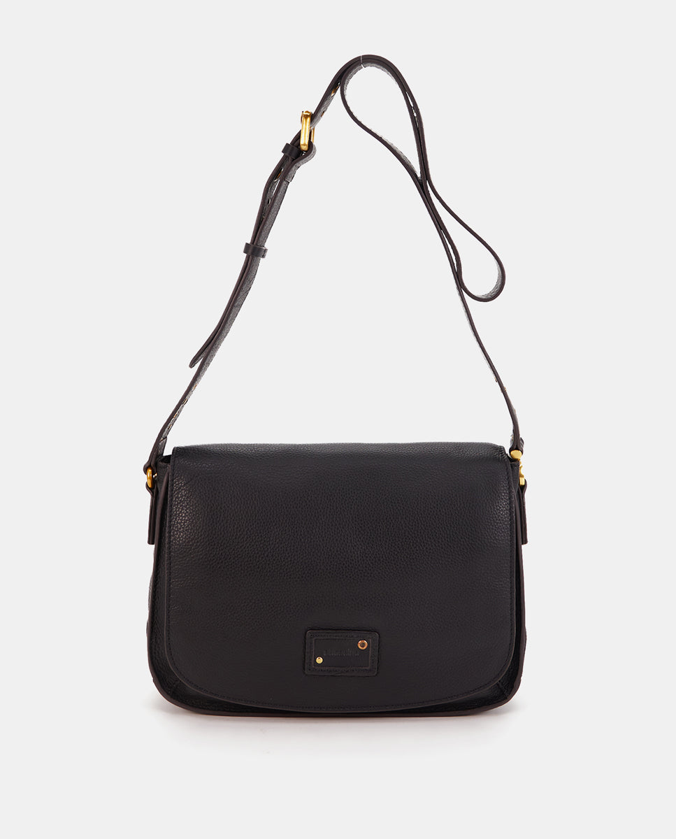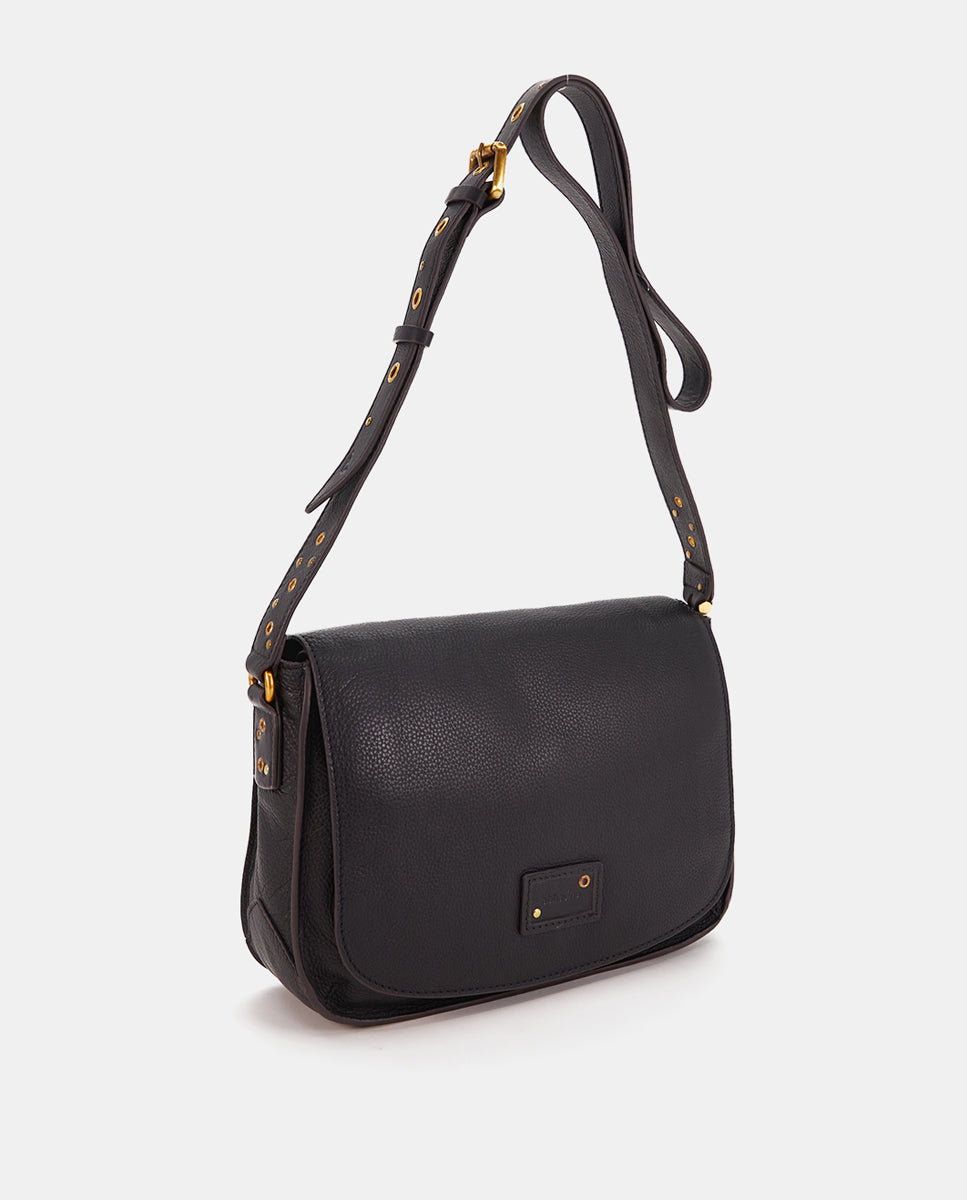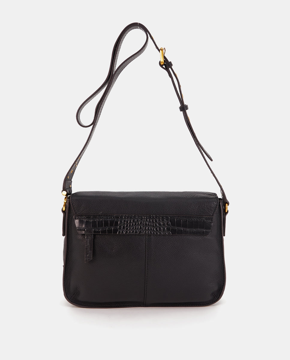 • Adjustable crossbody strap decorated with gold hardware for an elegant touch.