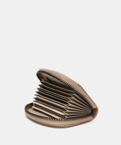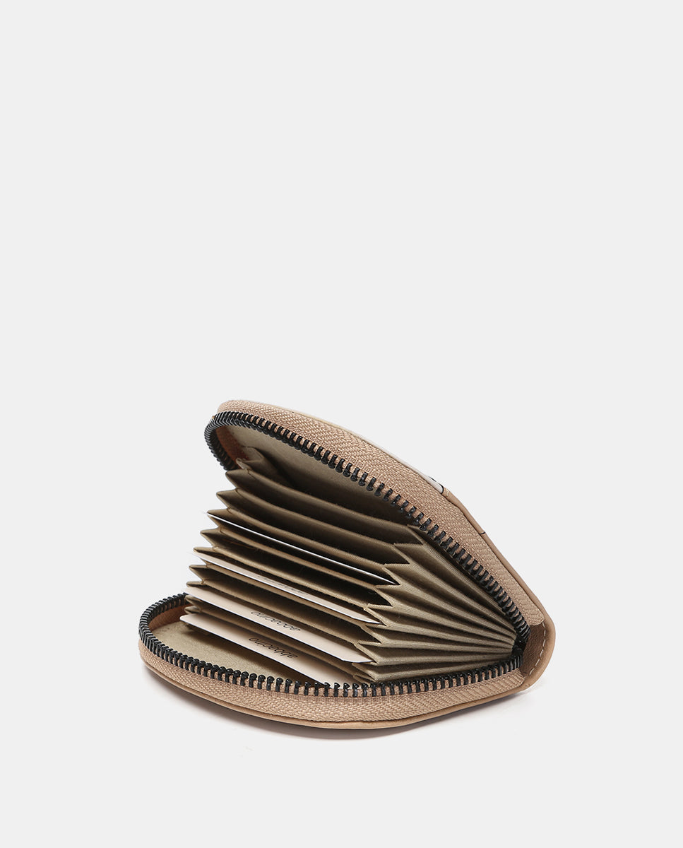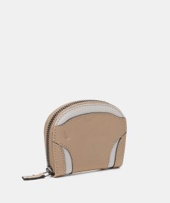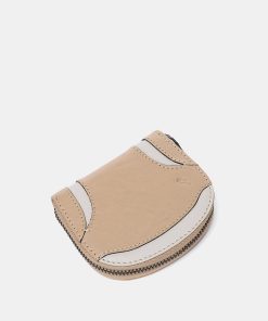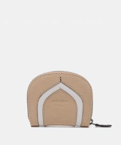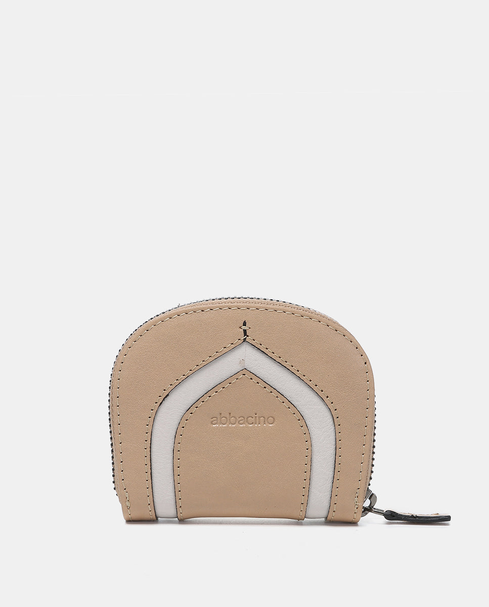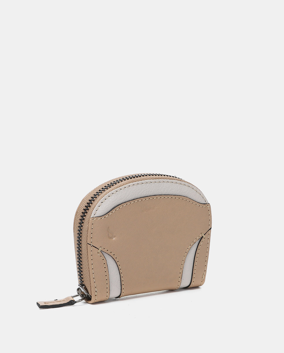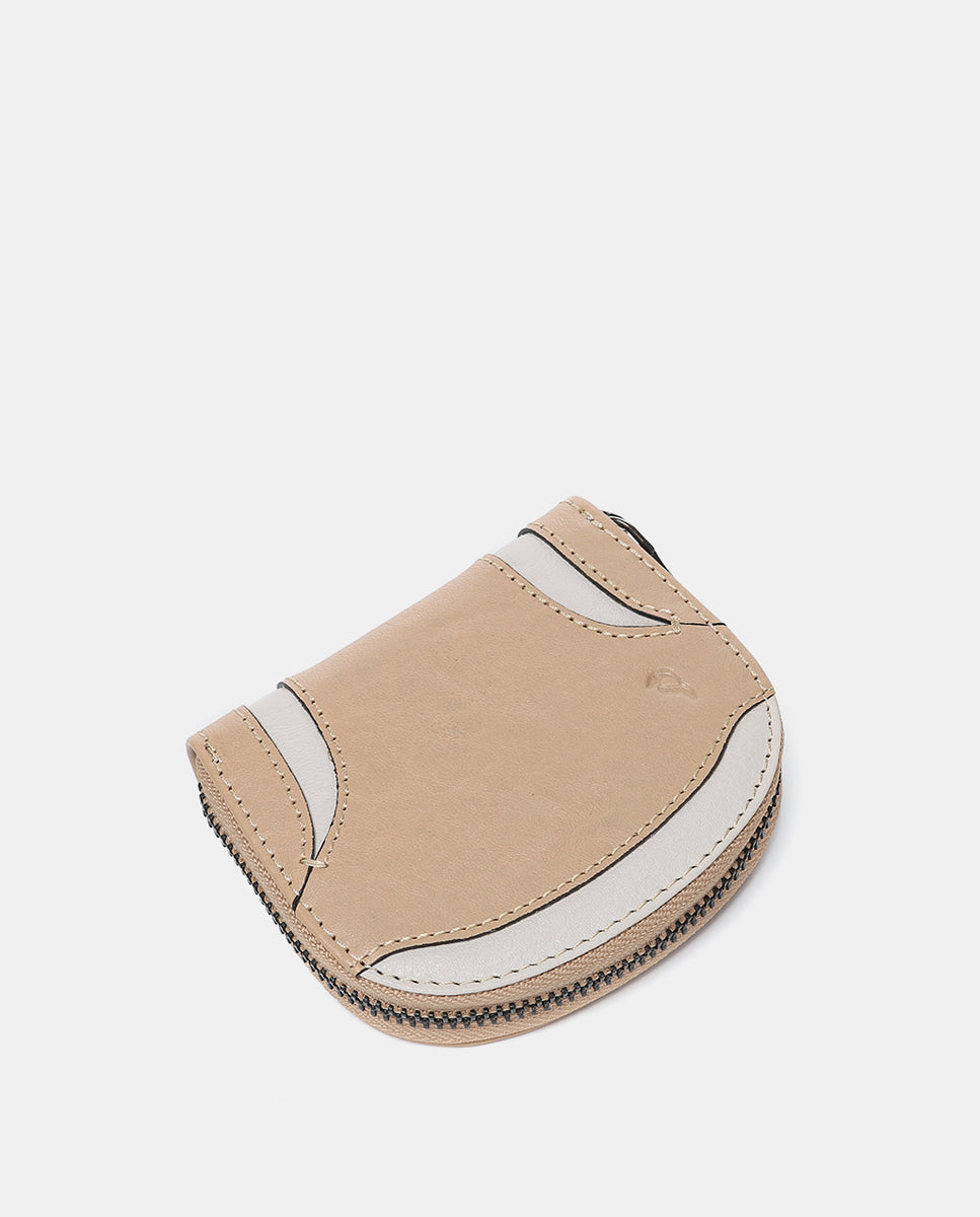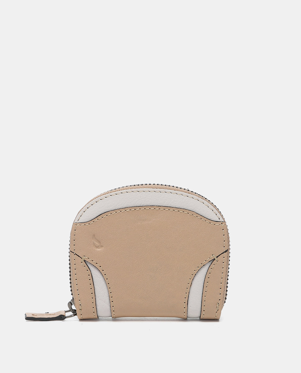 Women’s crescent-shaped coin purse made of leather, featuring a fine curved strip that contrasts with the main tone of the accessory. Its main characteristics are:
