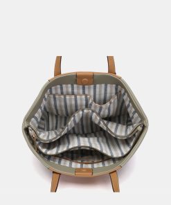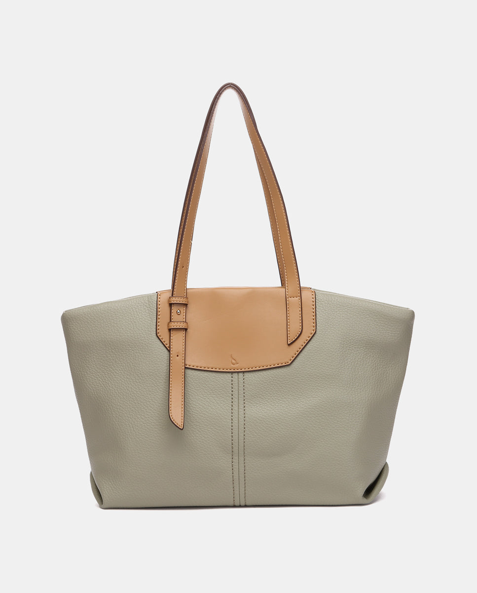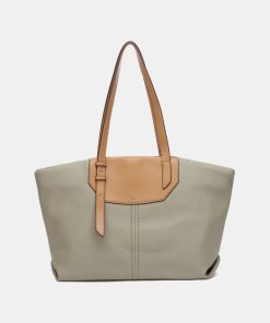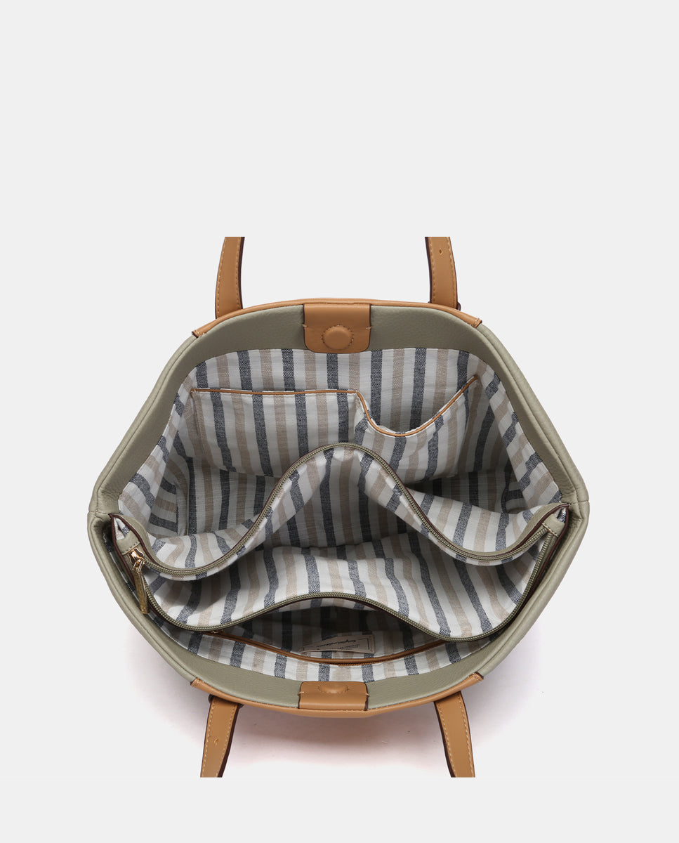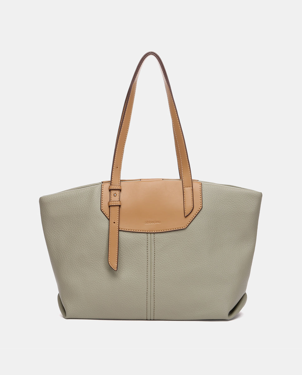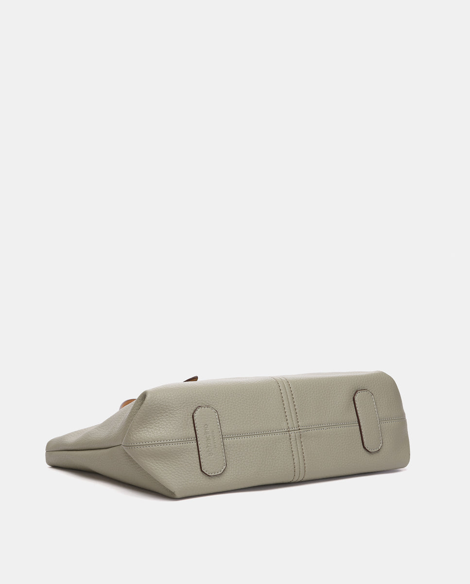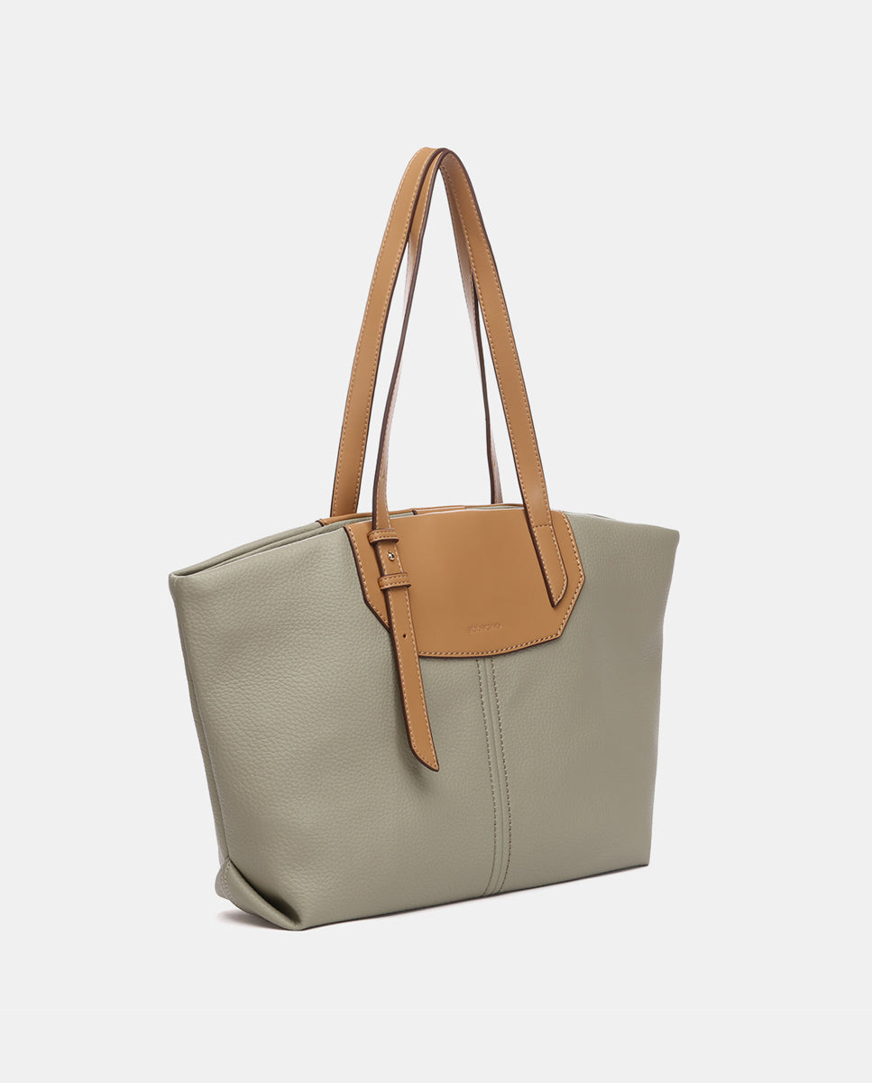 Women’s shopper bag made from recycled materials. Its classic cut design is both spacious and highly functional, ideal for everyday use. This bag stands out for its leather-colored details, such as the handles and its front piece. Its main features are: