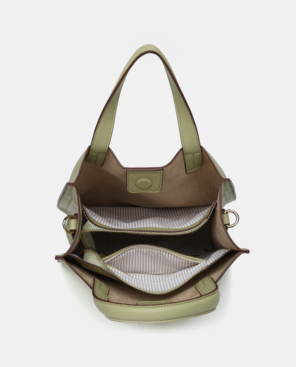 • Crossbody textile handle, which can be adjusted and is detachable.