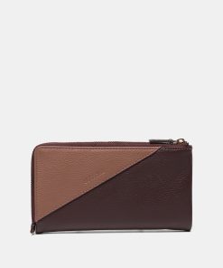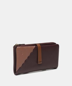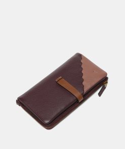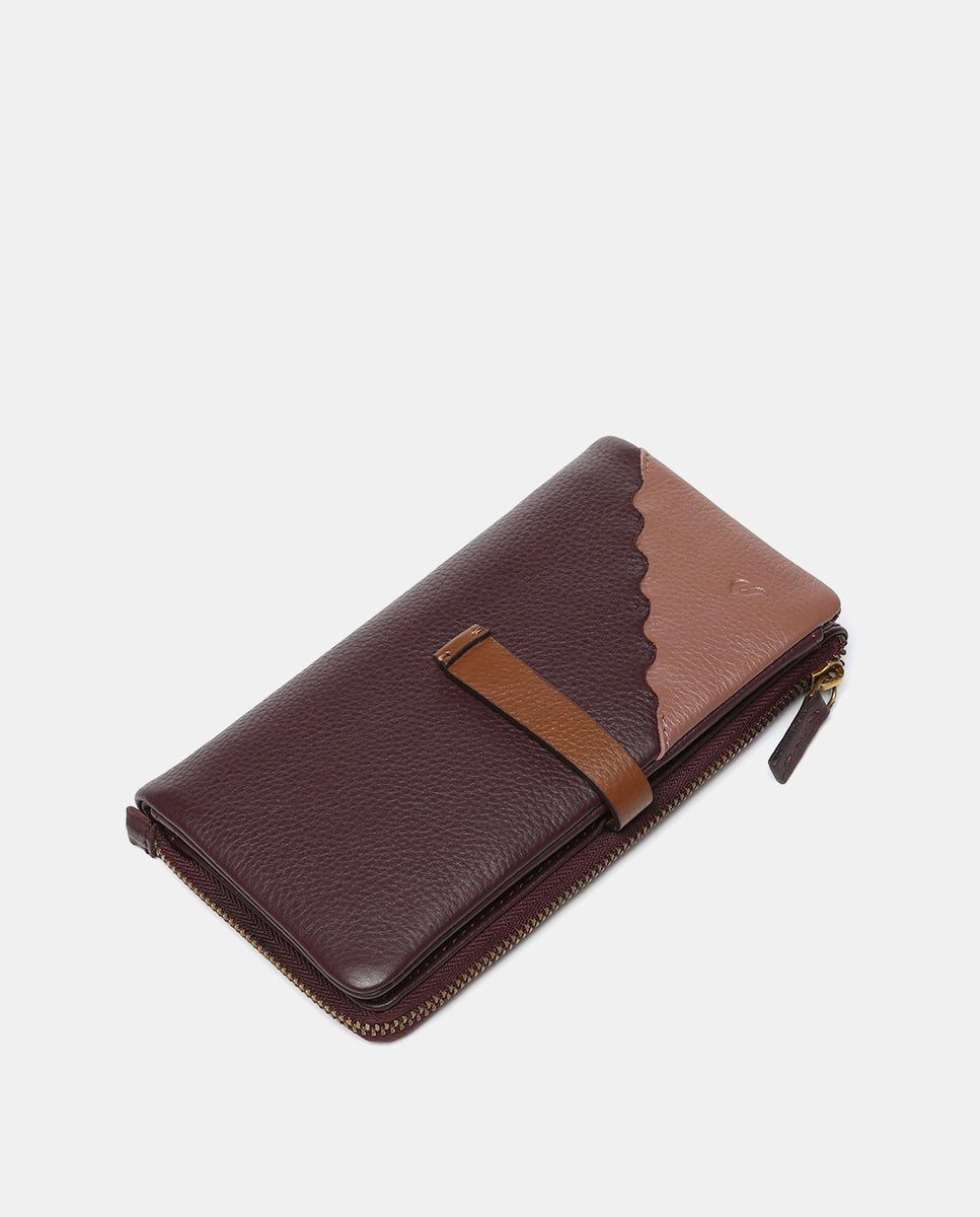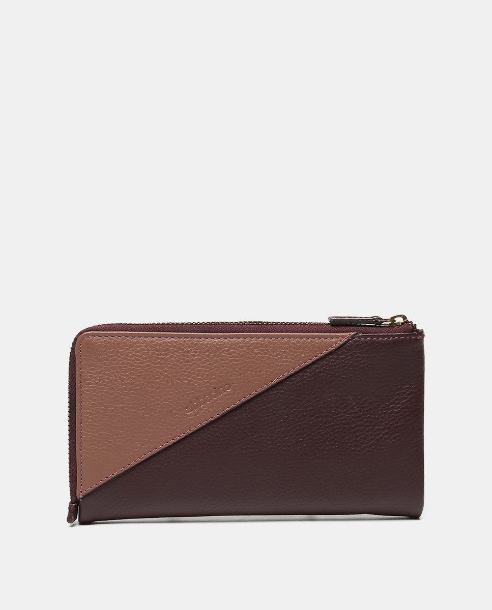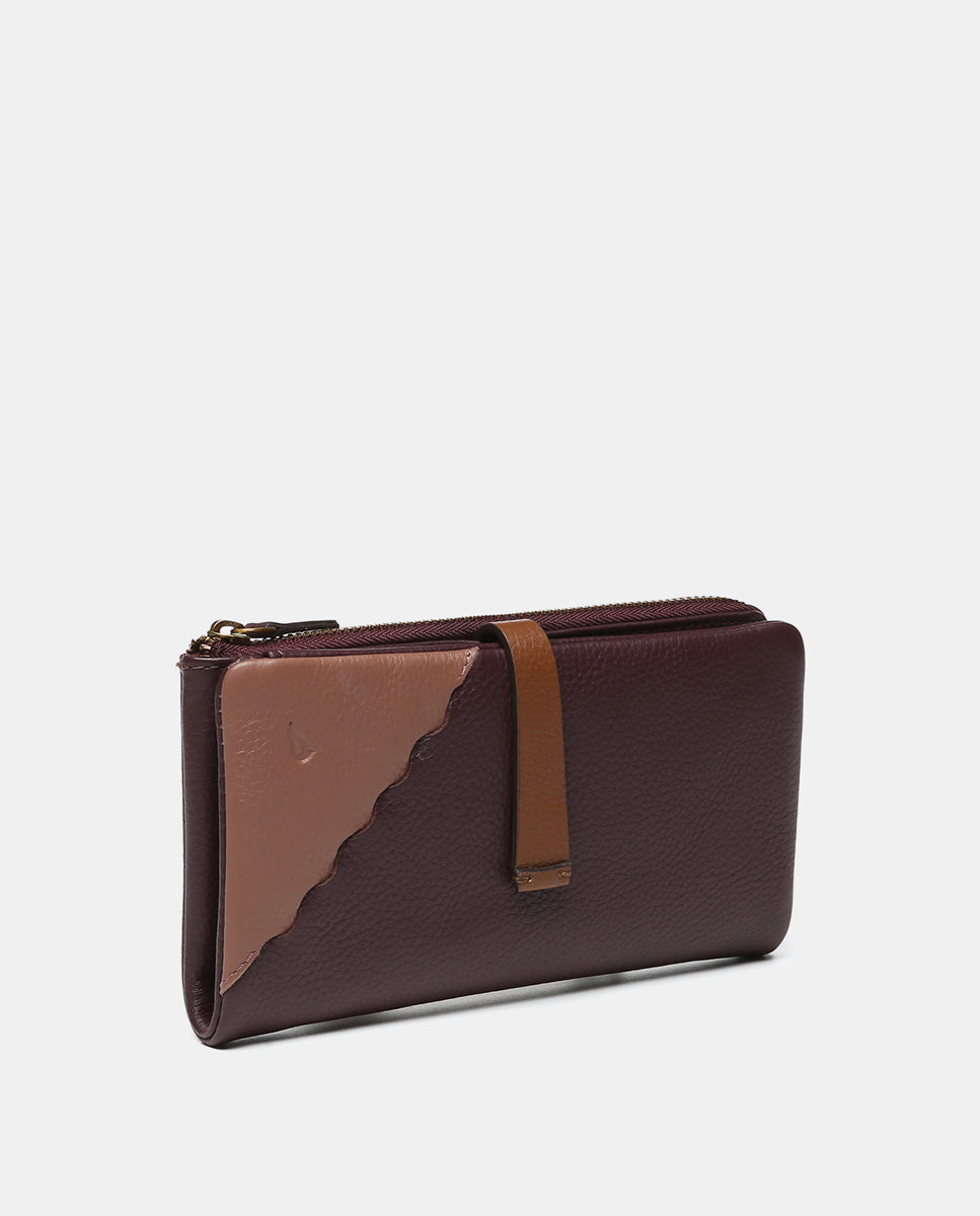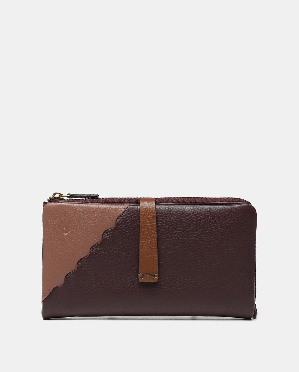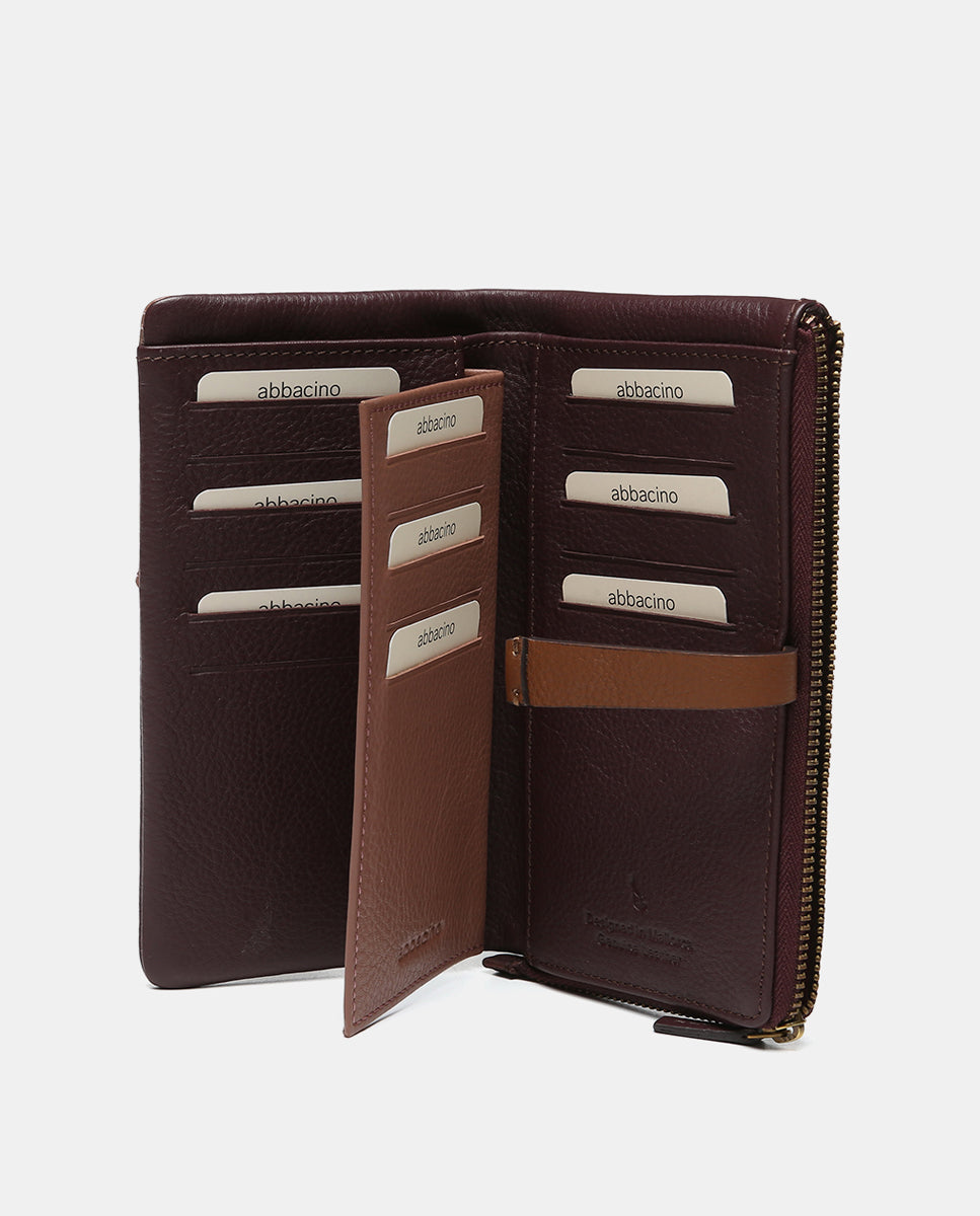 Large women’s wallet made of cowhide leather, combining two shades and featuring a wavy band on the front. Ideal for those looking for capacity and style. Its main features are: