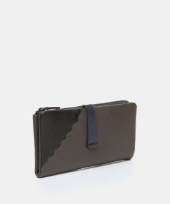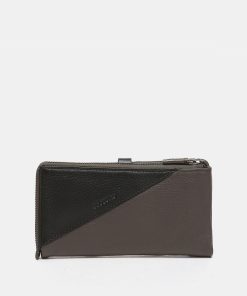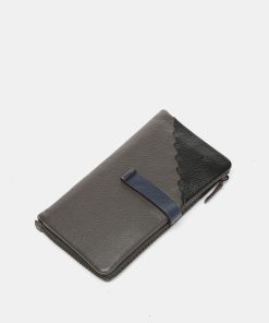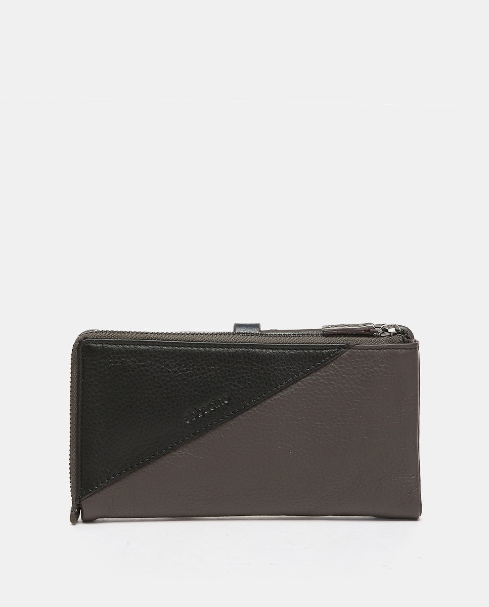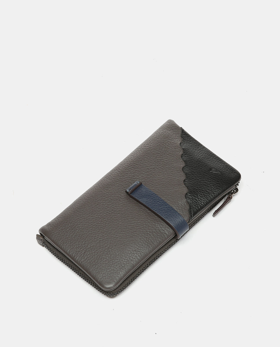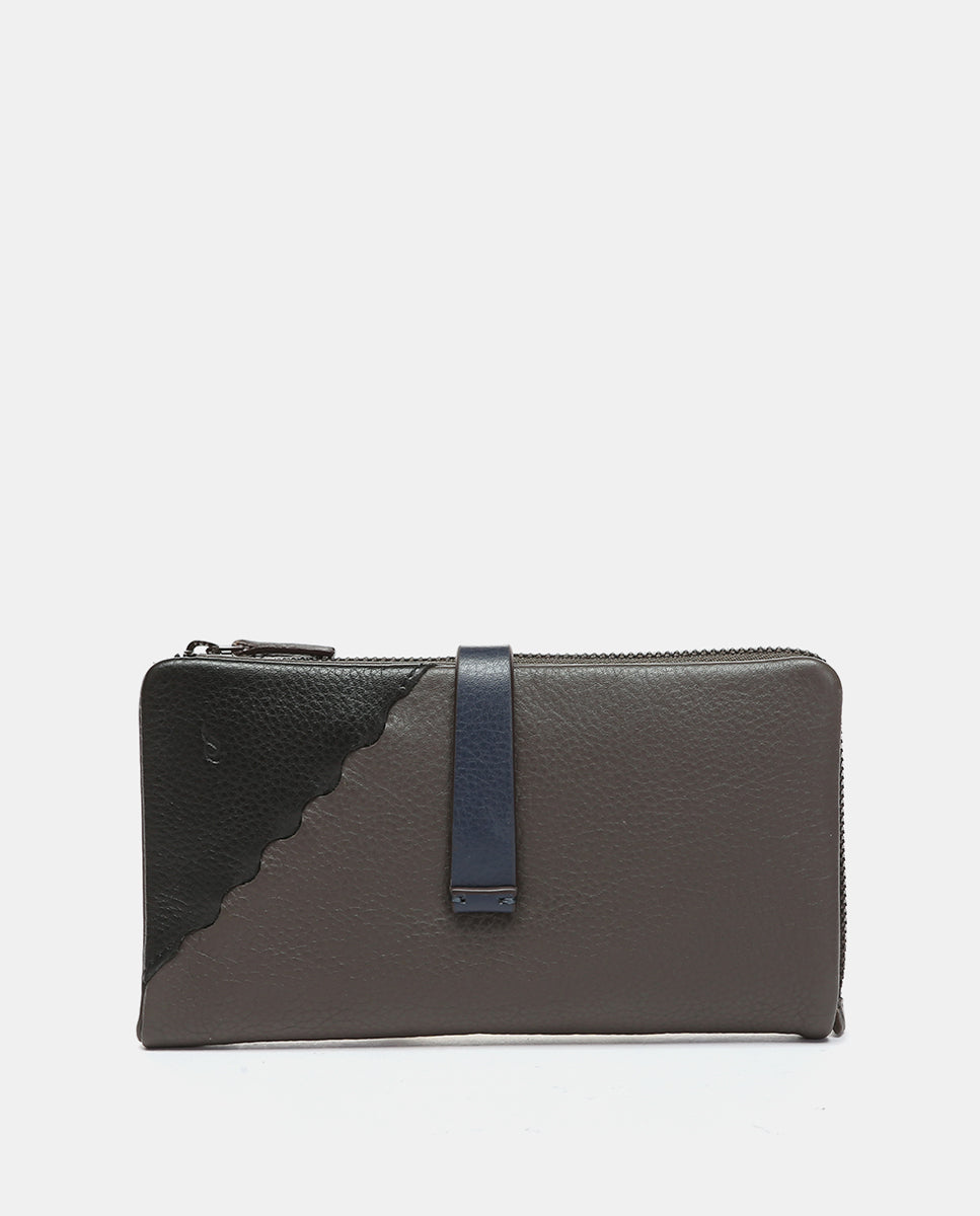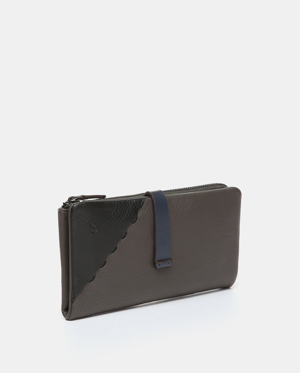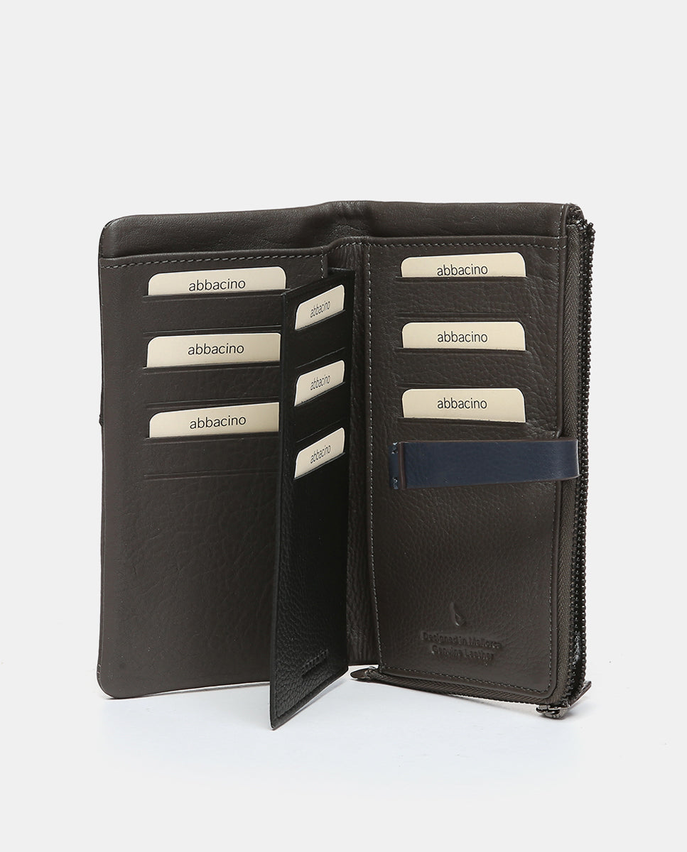 Large women’s wallet made of cowhide leather, combining two shades and featuring a wavy band on the front. Ideal for those looking for capacity and style. Its main features are: