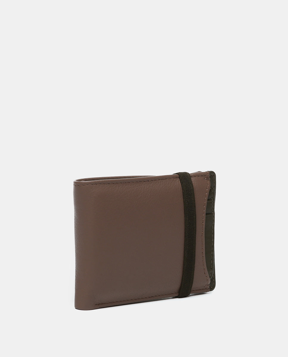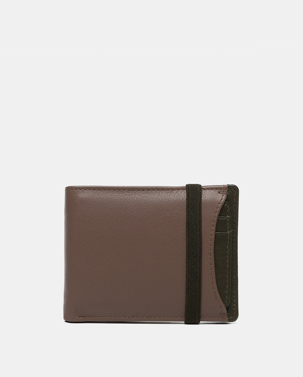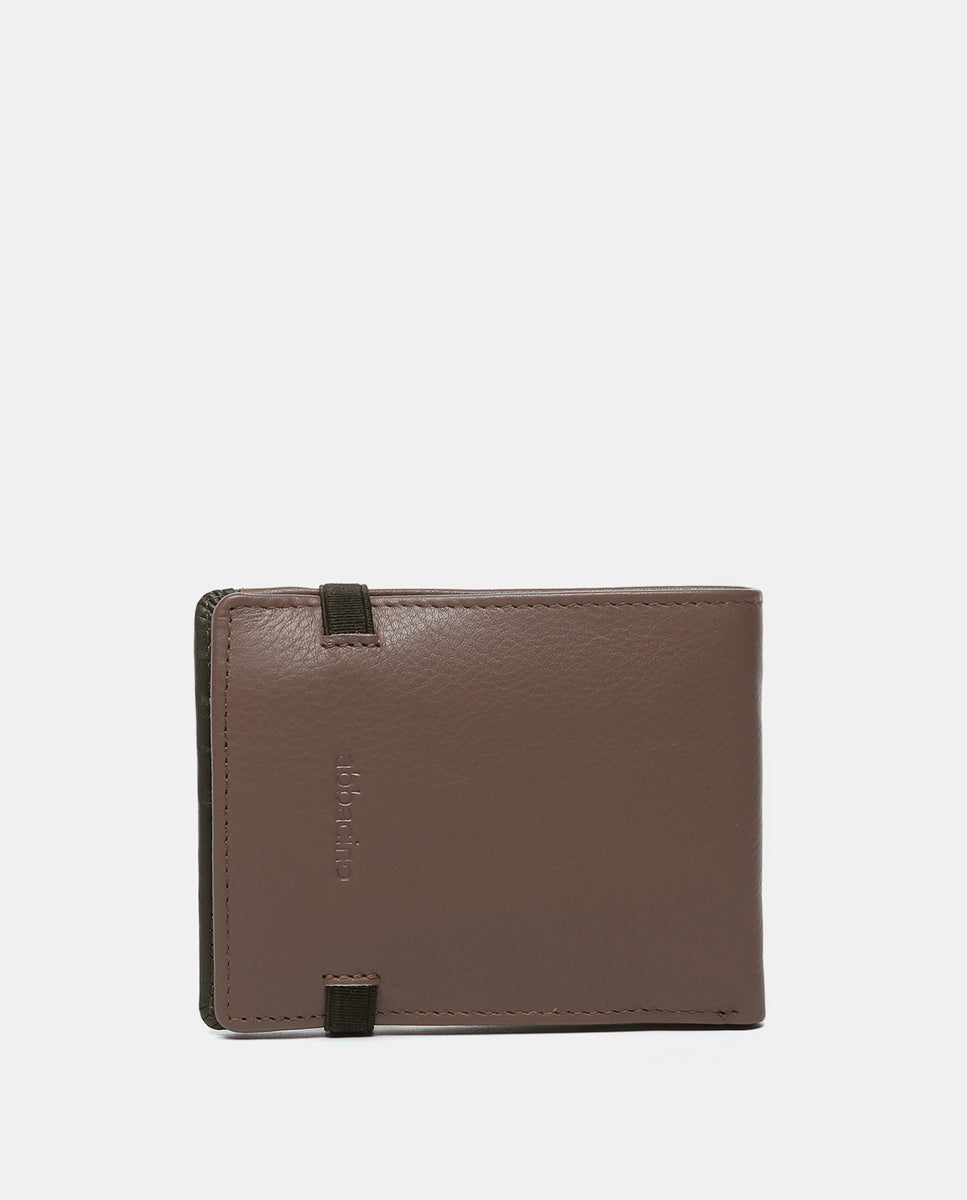Small men’s wallet made of cowhide leather. A very practical model with an elastic closure that combines two color tones. It features several organizational compartments for cards and bills, an interior coin pocket, and an exterior removable cardholder. RFID protection system.