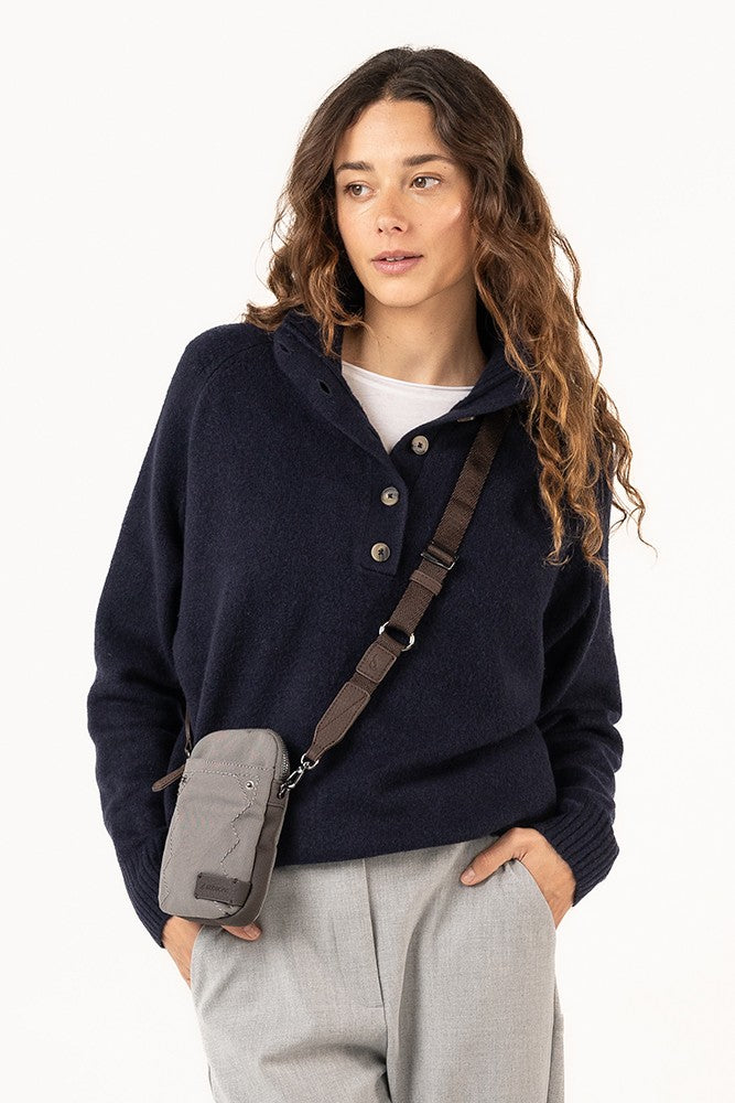 Mobile phone bag made from recycled and sustainable materials. A highly functional design that combines different autumnal color tones, ideal for daily use. Its main features are: