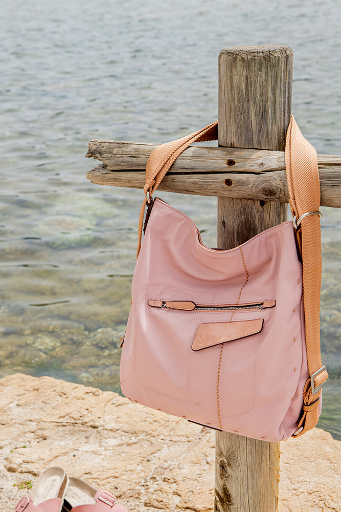 Convertible bag into a backpack made from recycled materials and with a sporty style. With a very casual design, it is a very comfortable, practical, and lightweight model, ideal for daily use. Its main features are: