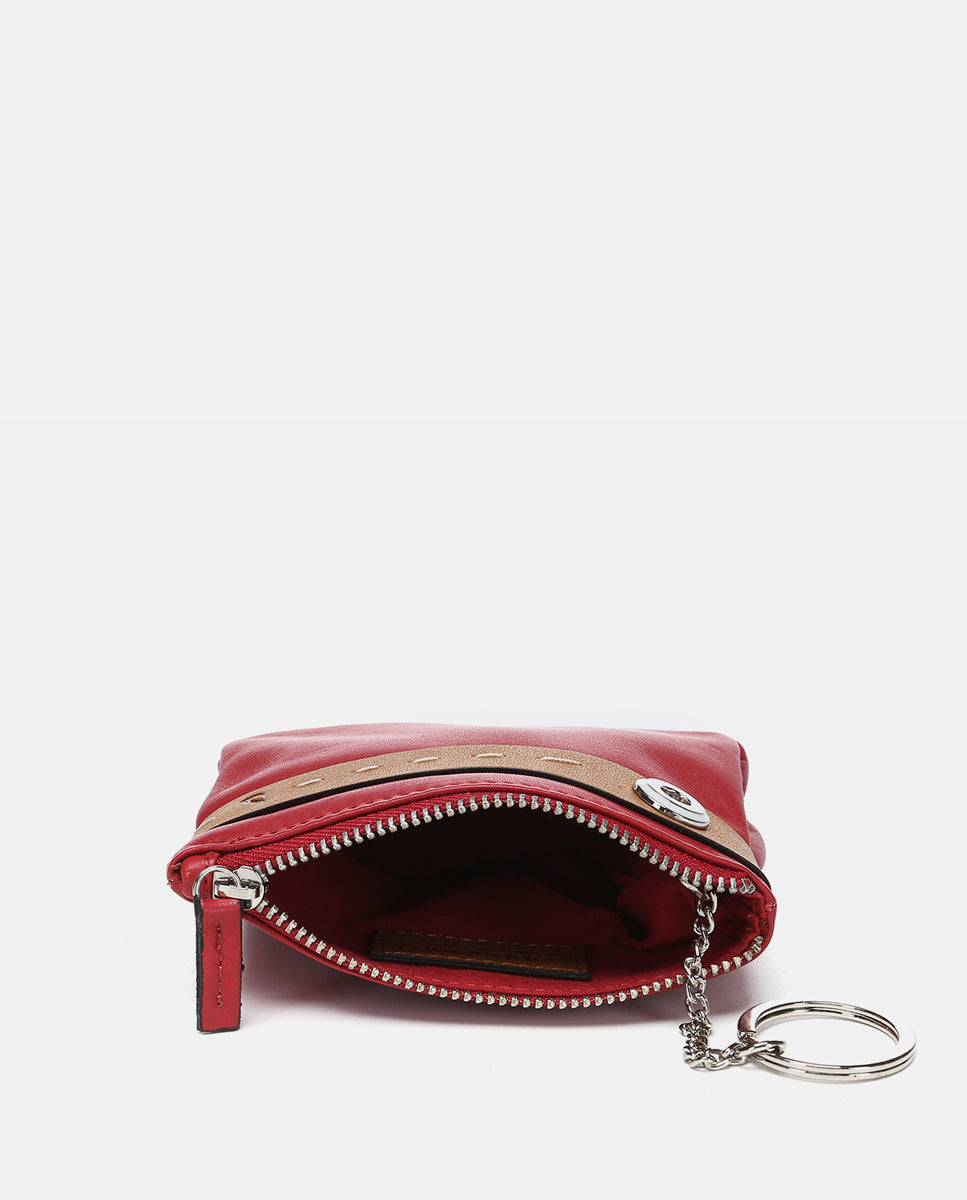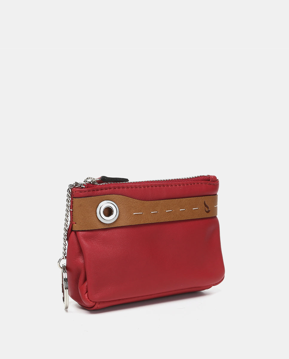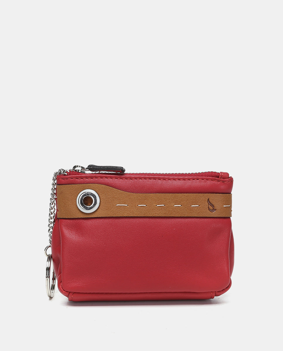 Women’s coin purse made of leather, featuring a two-tone color combination. A unique design dyed in summery colors with metallic accents. A perfect accessory to store coins and small items like keys, bills… Its main features are: