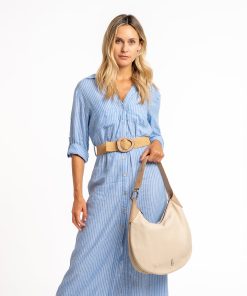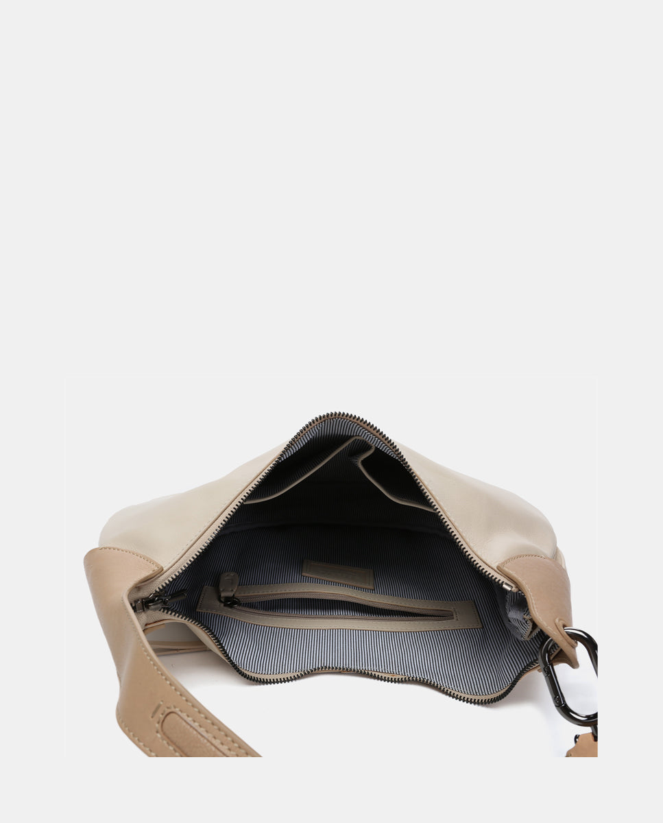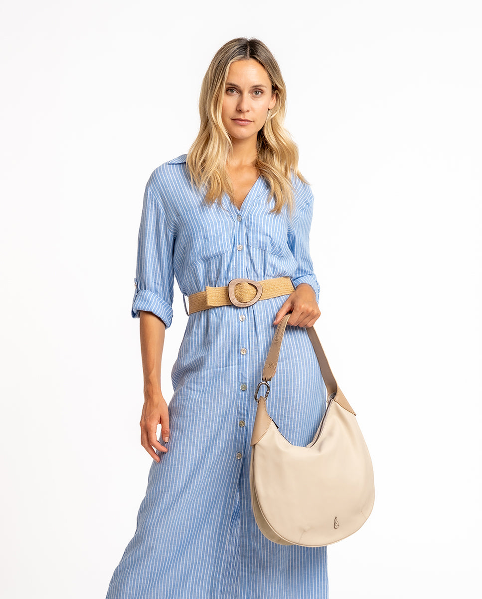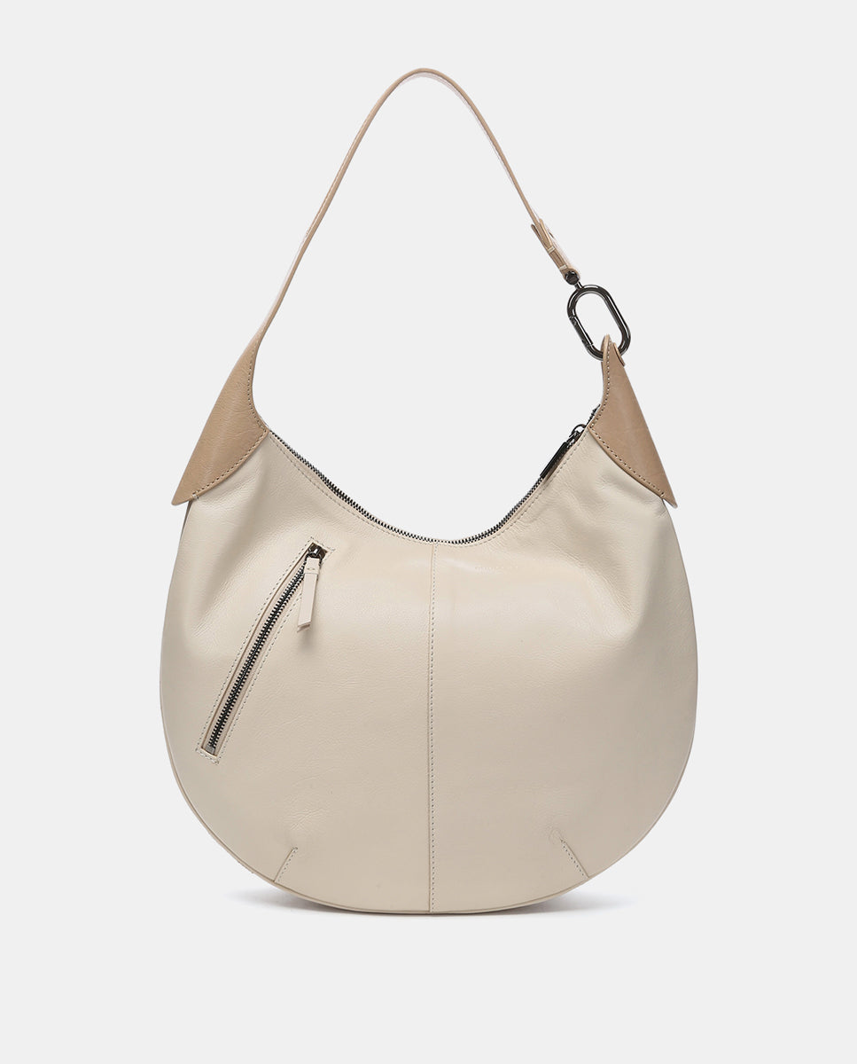 Hobo-style shoulder bag made of premium leather. Its minimalist and curved design makes it a versatile accessory that complements any look. Perfect for daily use, this bag combines functionality and timeless design. Its main features are: