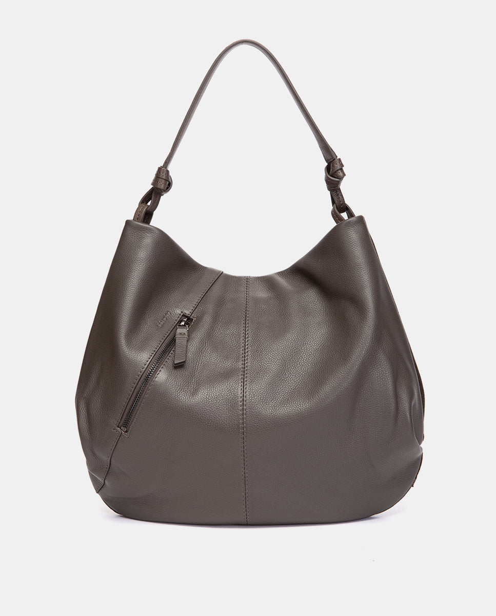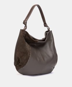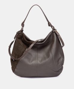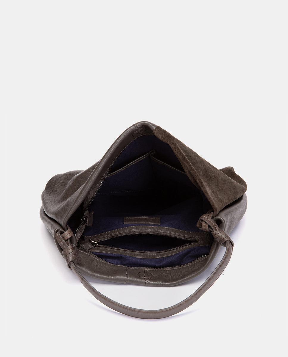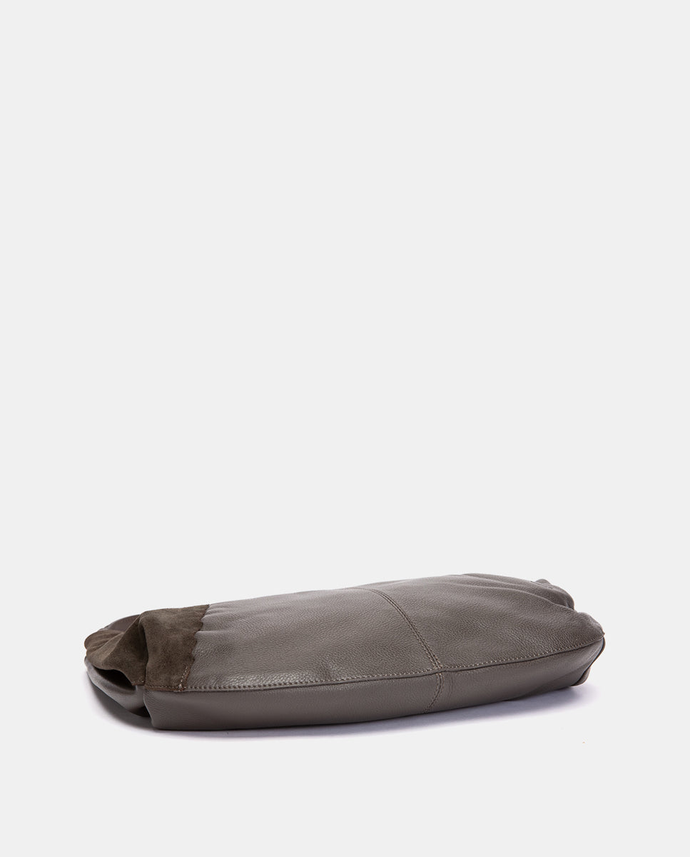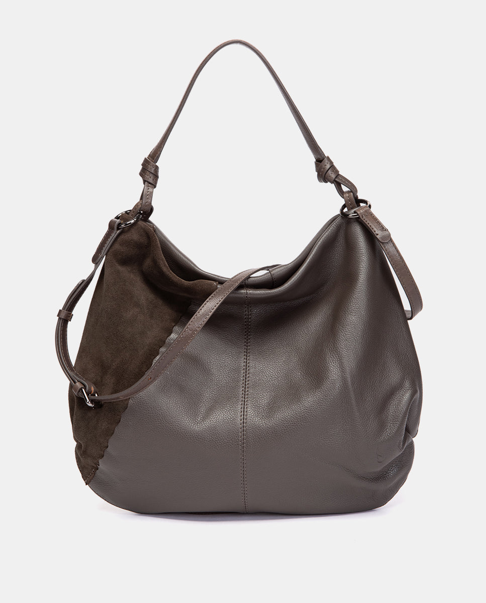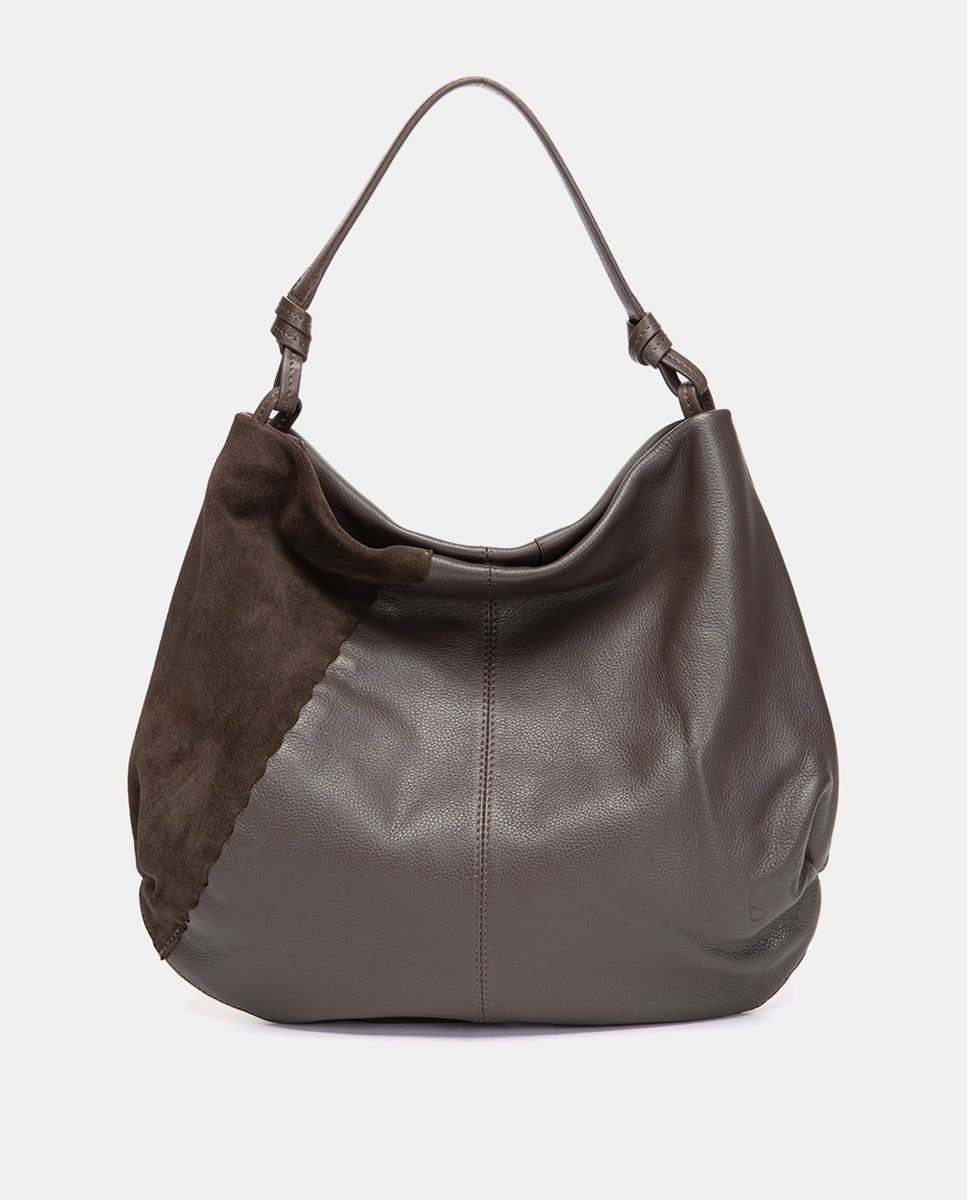 Hobo-style shoulder bag that combines leather and suede, creating an elegant contrast of textures, perfect for everyday use. Its main features are: