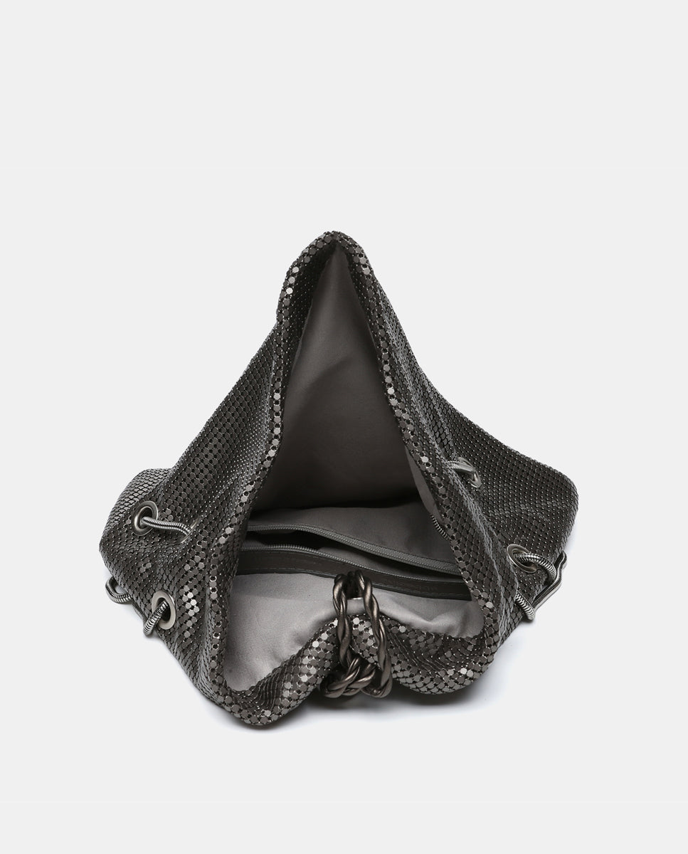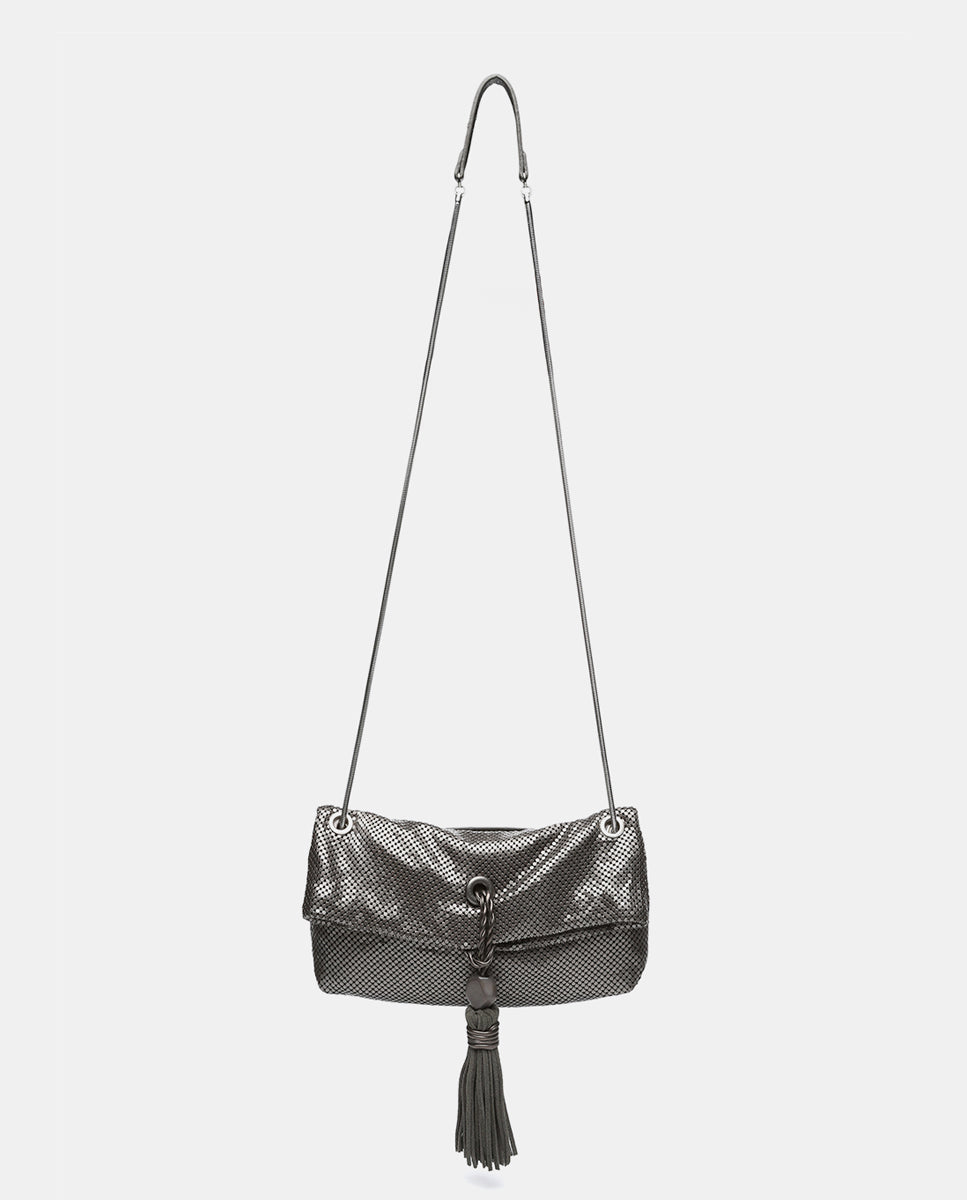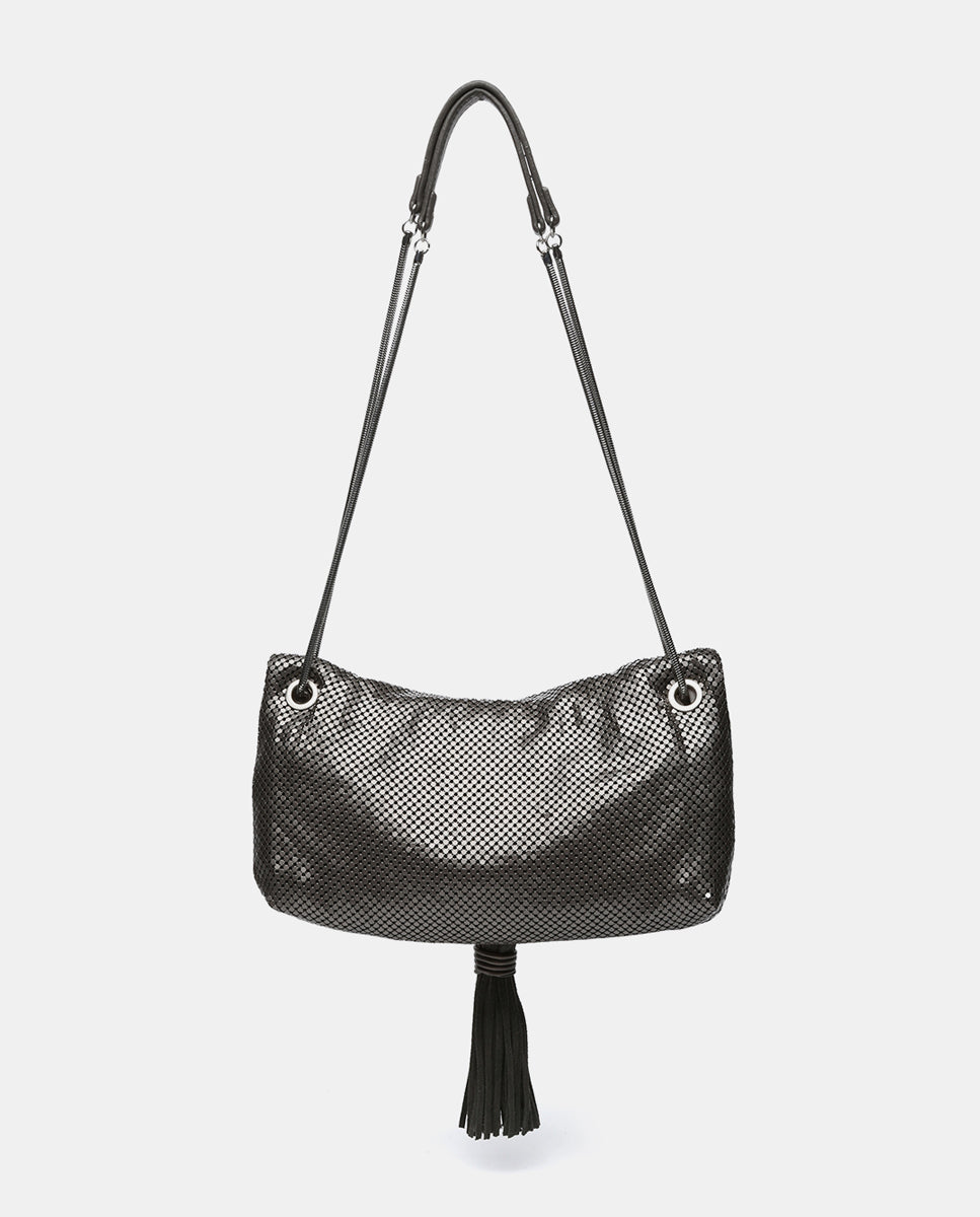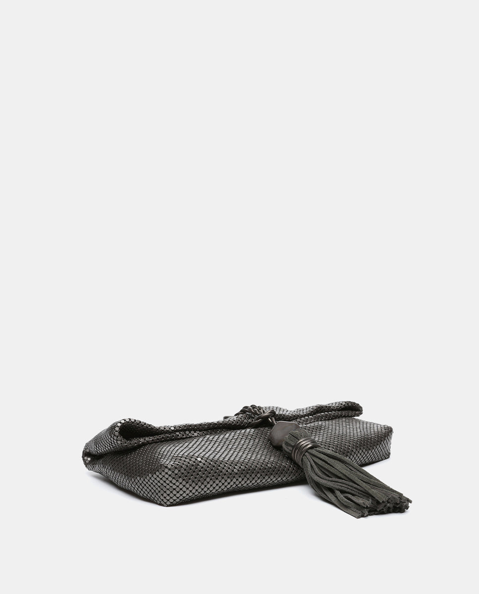 An original and bold party bag that will make you shine wherever you go. This model is an ideal option for creating unique looks that won’t go unnoticed. A rectangular design made with metallic mesh, perfect for special occasions. Its main features are: