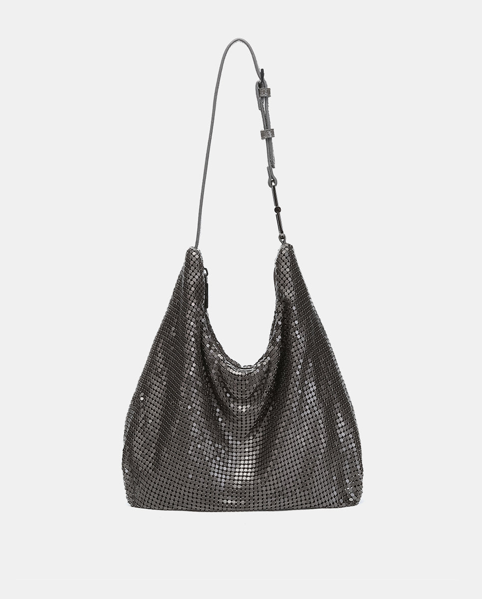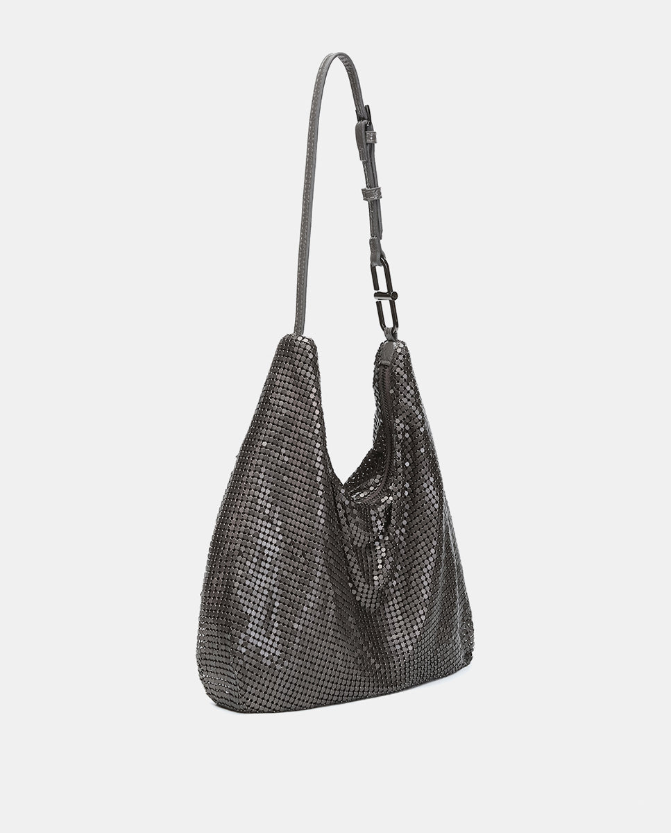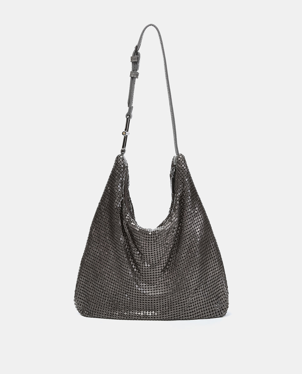 Hobo bag made of metallic mesh. Perfect for special events, it combines style and functionality to create unique looks. Its main features are: