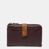 • On the outside, it has a large coin purse and a small compartment, both with zippers.