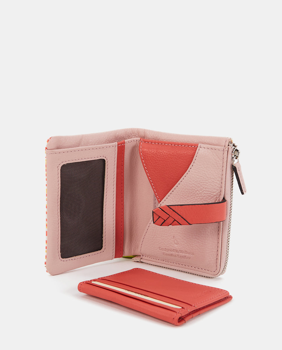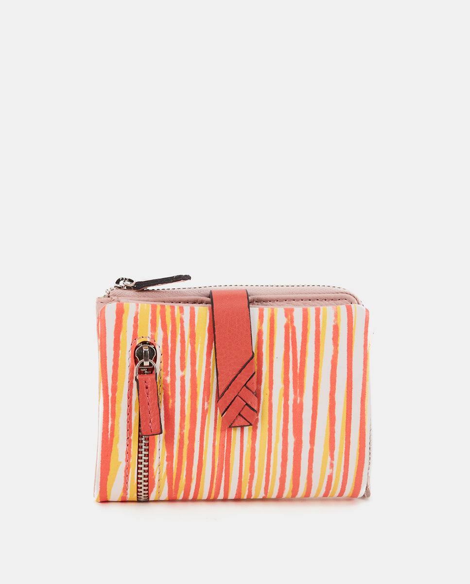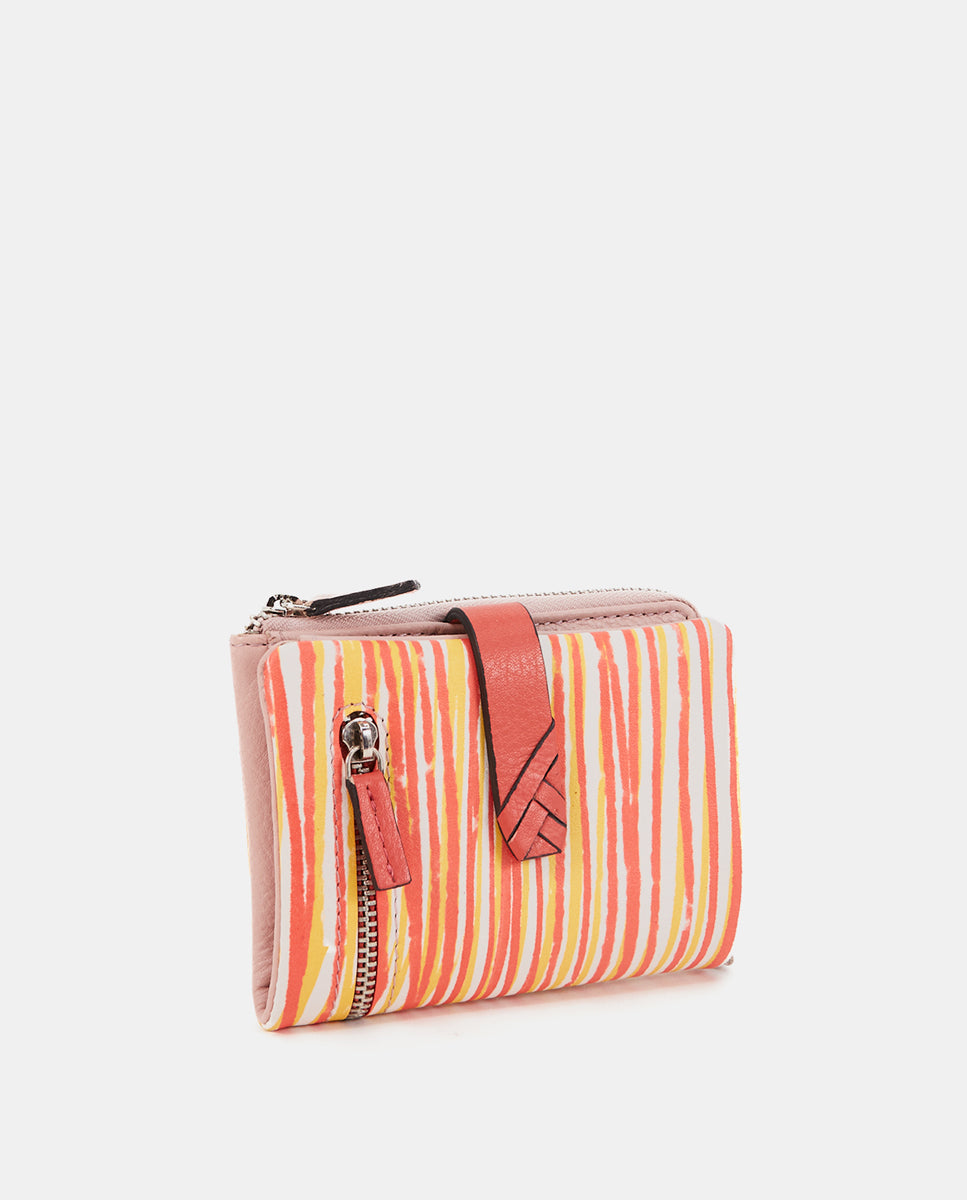 Small women’s wallet made from leather. A design featuring a beautiful striped pattern in fresh, vibrant tones. It is an accessory that pays attention to every detail and, thanks to its layout, allows for excellent organization. Its main features are: