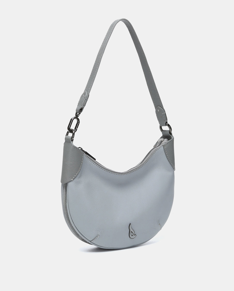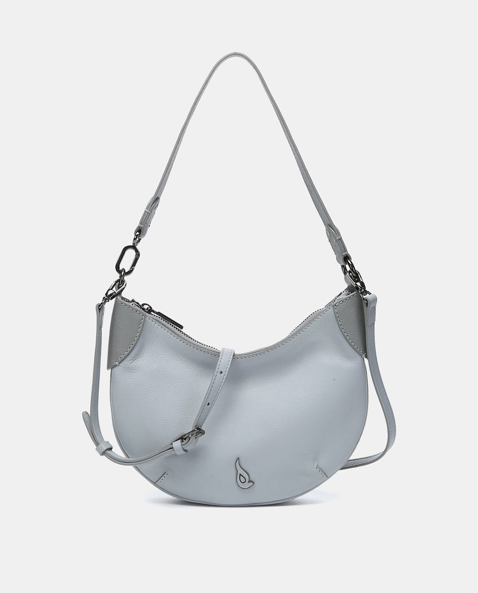 Small hobo-style shoulder bag made of premium leather. Its minimalist and curved design makes it a versatile accessory that complements any look. Perfect for everyday use, this bag combines functionality with timeless design. Its main features are:
