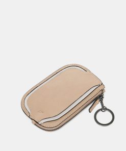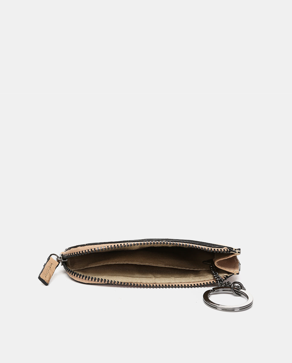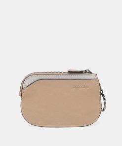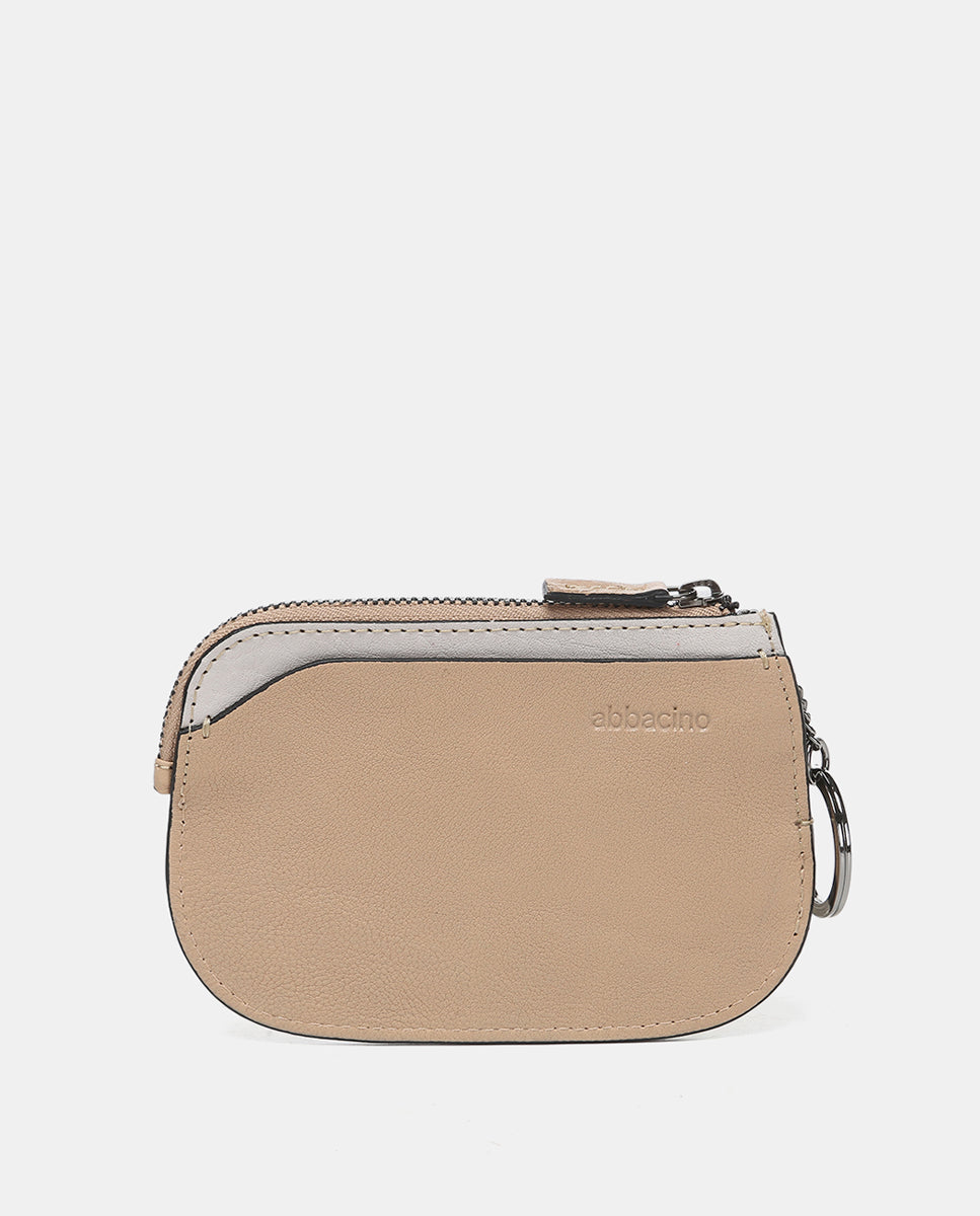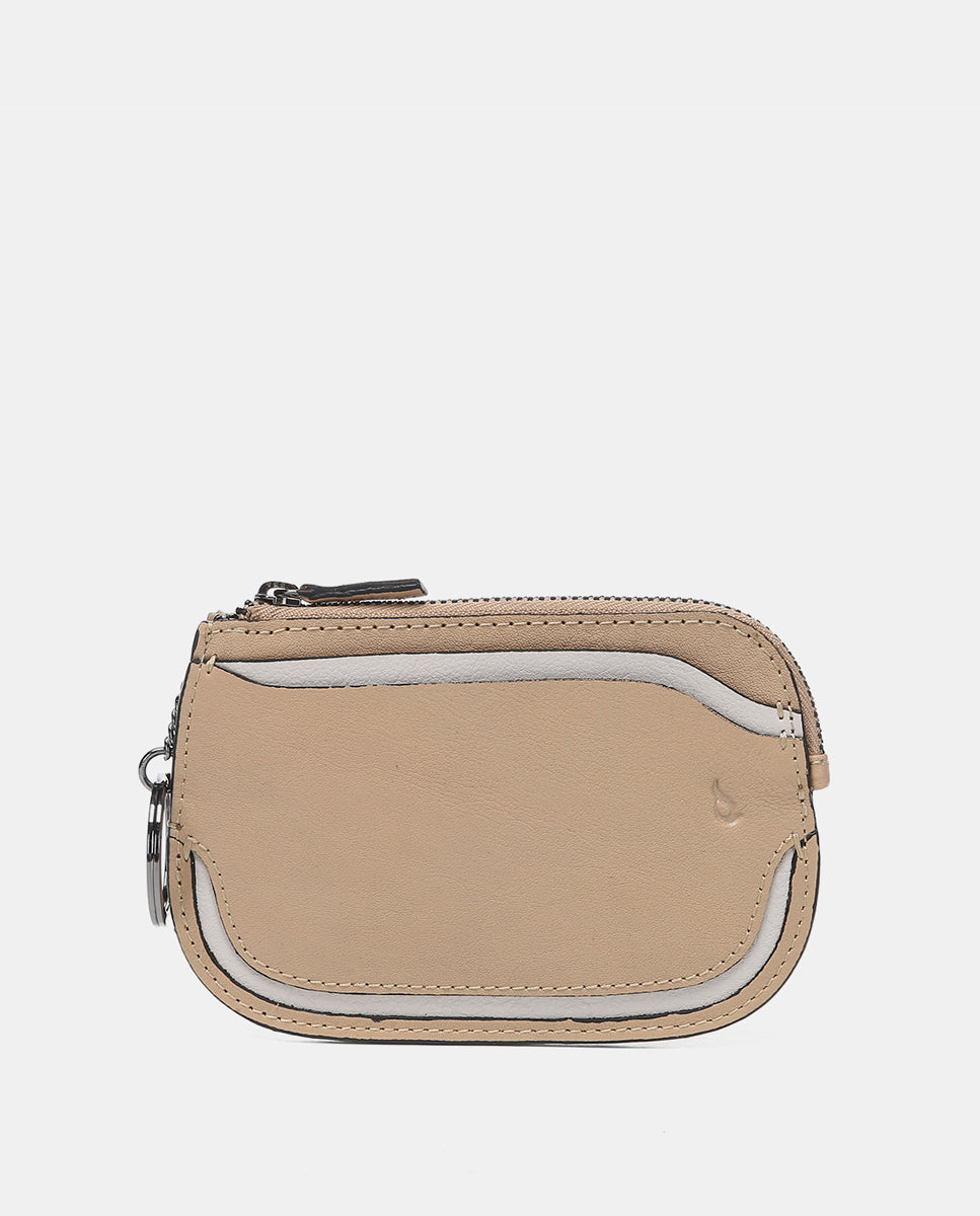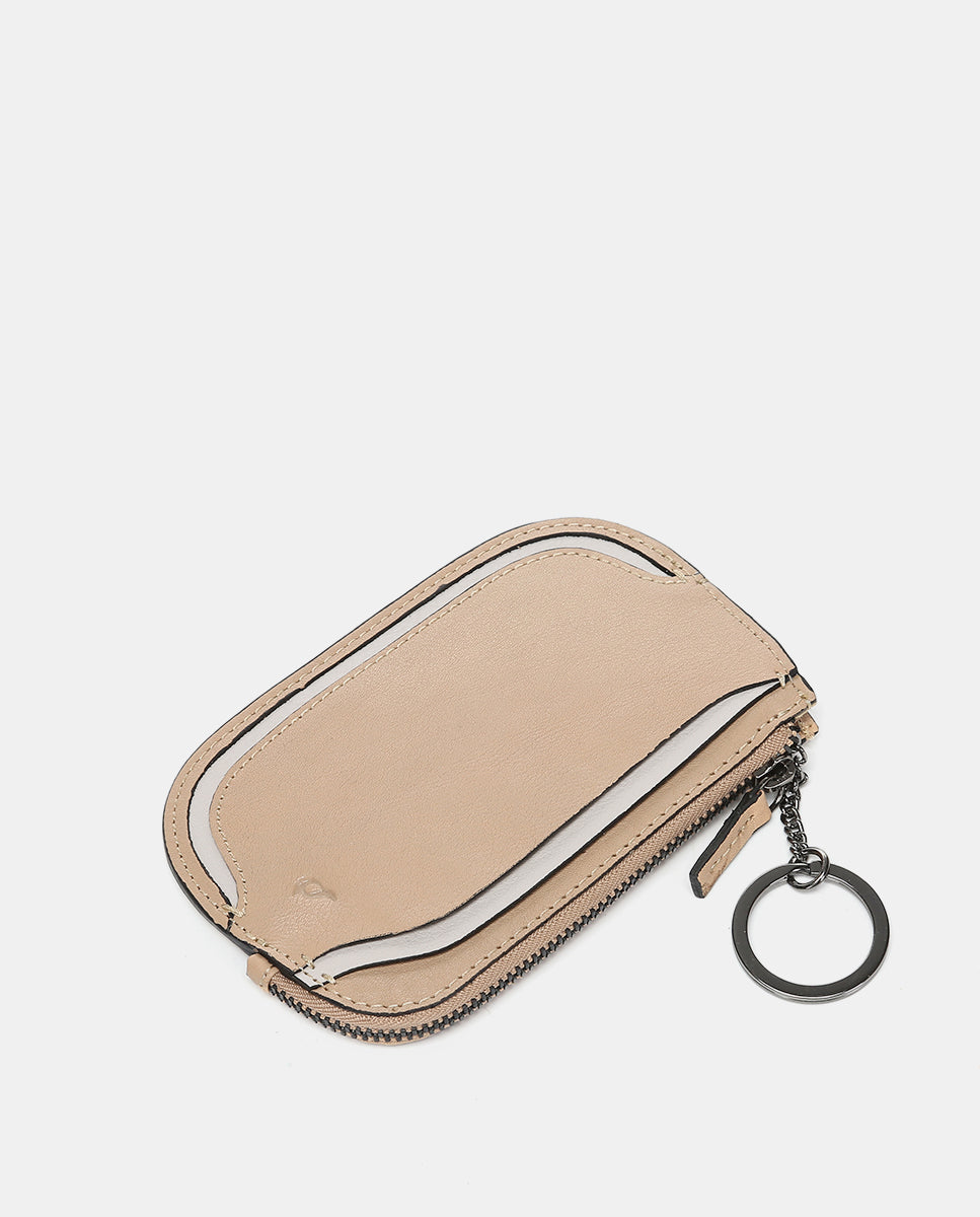 Women’s semicircular cardholder made of leather, featuring a fine curved stripe that contrasts with the main color of the accessory. Its main features are: