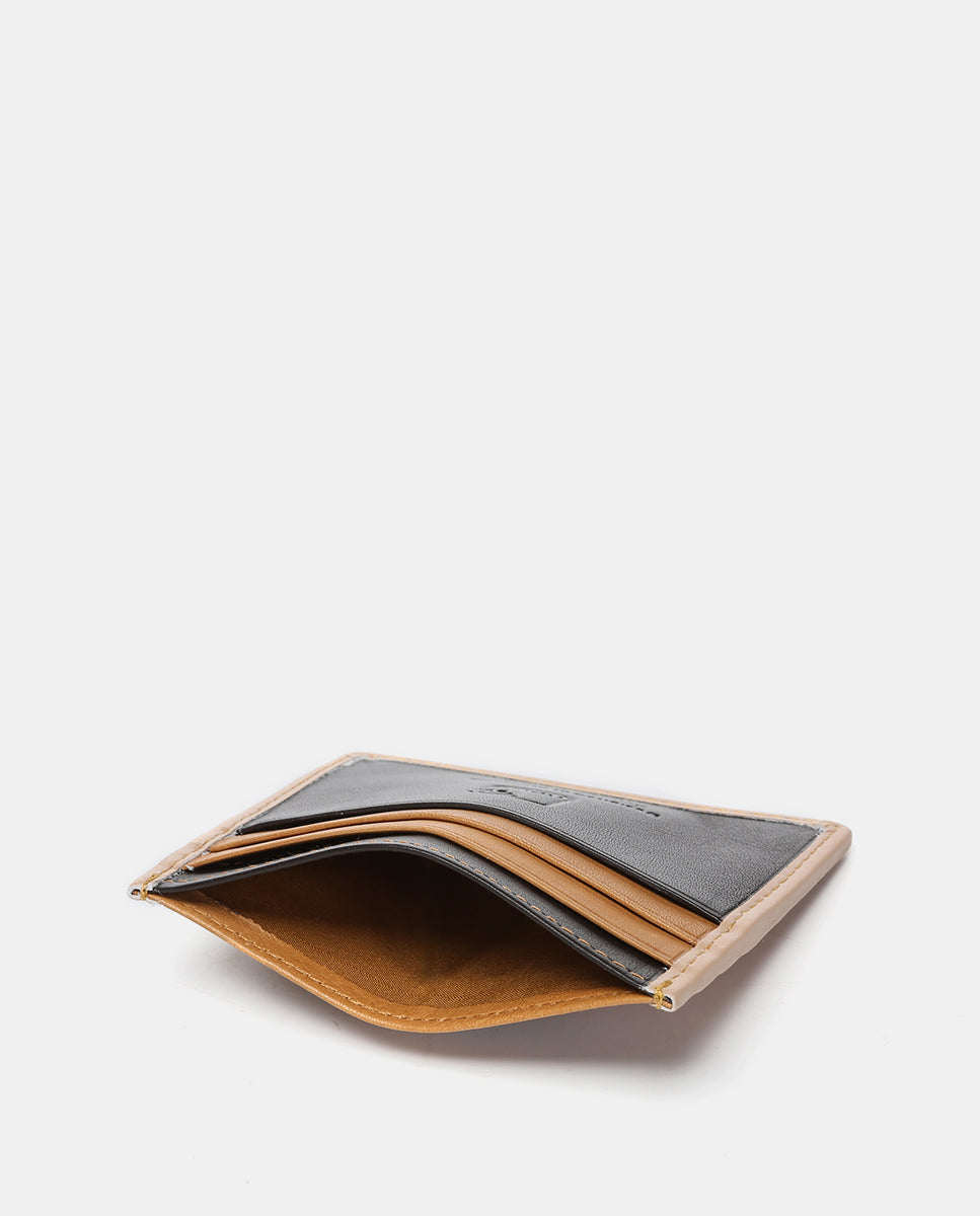 Men’s cardholder made of cowhide leather. It stands out for its color combination. Ultra-thin design with multiple exterior slots for cards.