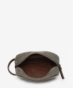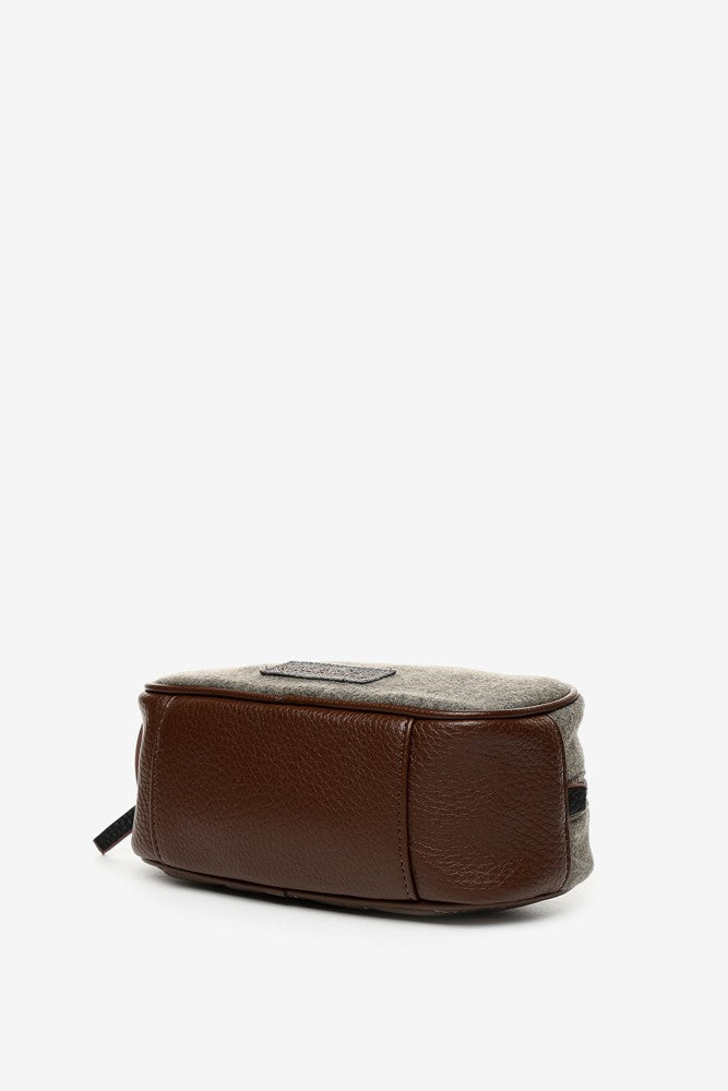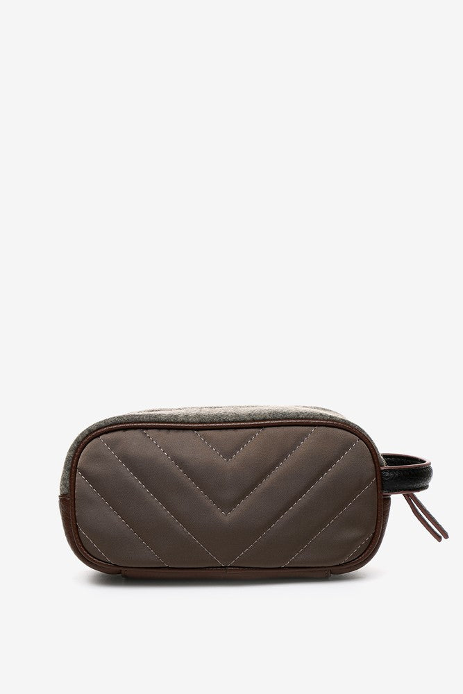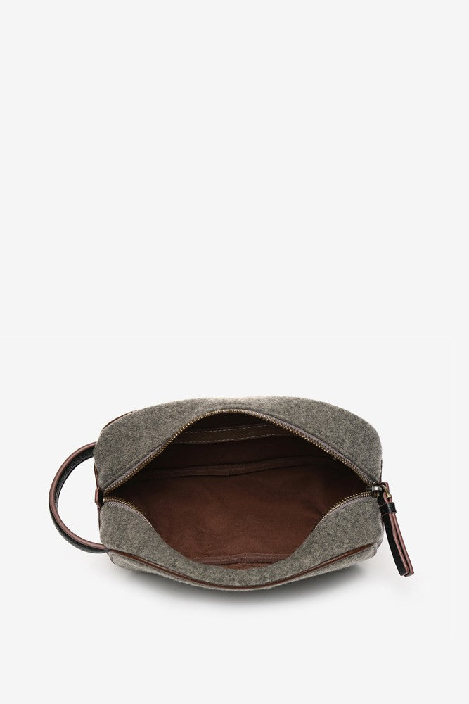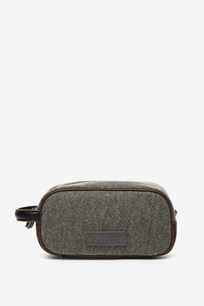 Women’s cosmetic bag with hand strap made from a combination of felt and synthetic leather. An essential accessory to accompany you on your weekend getaways or business trips, take it with you wherever you go, whether in your suitcase or in your handbag. A spacious model in which you can store keys, coins, cards, pens and even cosmetics.