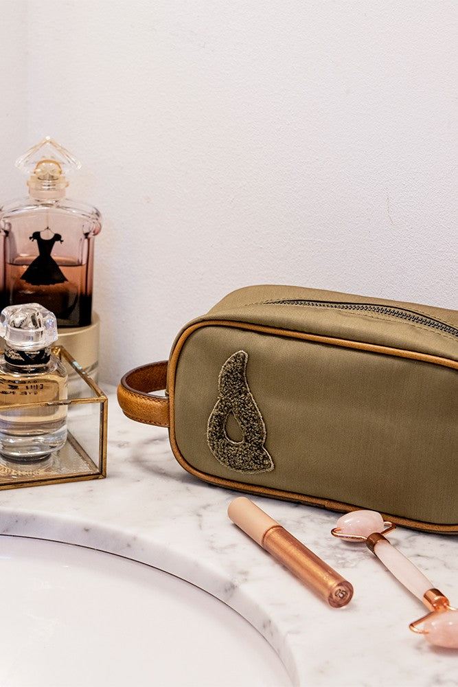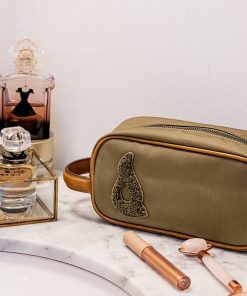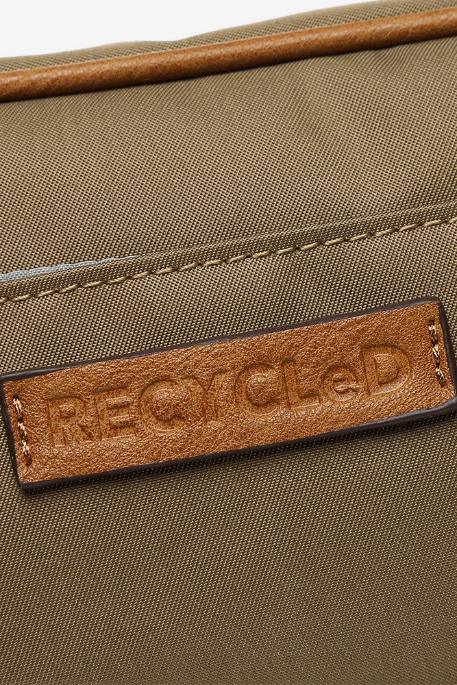Women’s cosmetic bag with hand strap, made of recycled materials and using processes that advocate sustainability. An essential accessory to accompany you on your weekend getaways or business trips, take it with you wherever you go, whether in your suitcase or in your handbag.