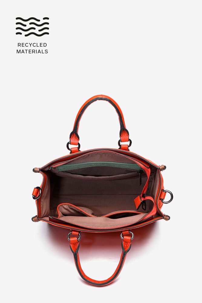 • It combines its hand handles with a practical textile shoulder strap, which can be adjusted and is removable.