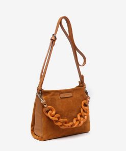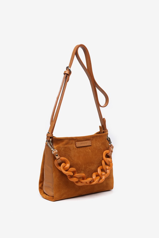 Women’s crossbody bag made from premium suede. An innovative design that stands out for its colours and the large chain that rests on the front. Designed in Italy, this is an original, daring accessory that follows the latest fashion trends.